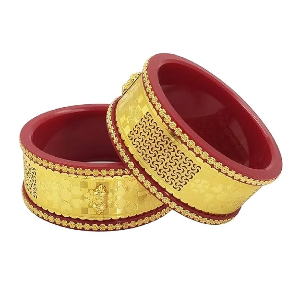 Tanvi J Acrylic Gold Plated Bracelet Shakha Pola Set for women Red and White