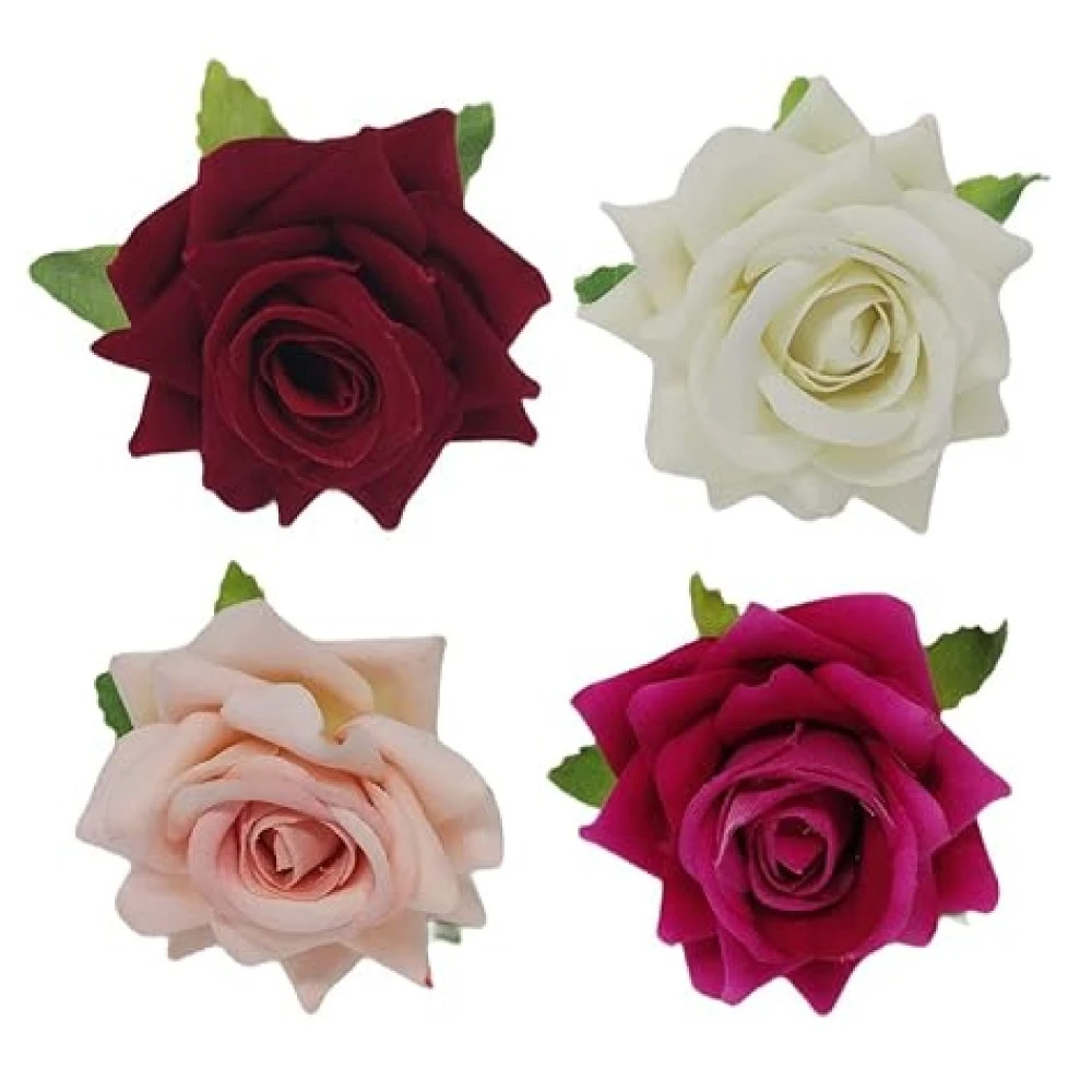 This combo of 4 original-looking beautiful roses is sure to attract admiration wherever you go. The skin-friendly colors and eye-catching design make them ideal accessories for women and girls of all ages.