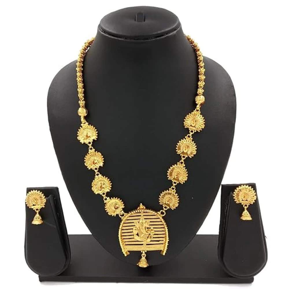Introducing our exquisite Traditional Gold Plated Long Necklace Set, a timeless piece that captures the essence of traditional elegance. Crafted with meticulous attention to detail, this necklace set is designed to enhance the beauty and grace of women on any occasion.