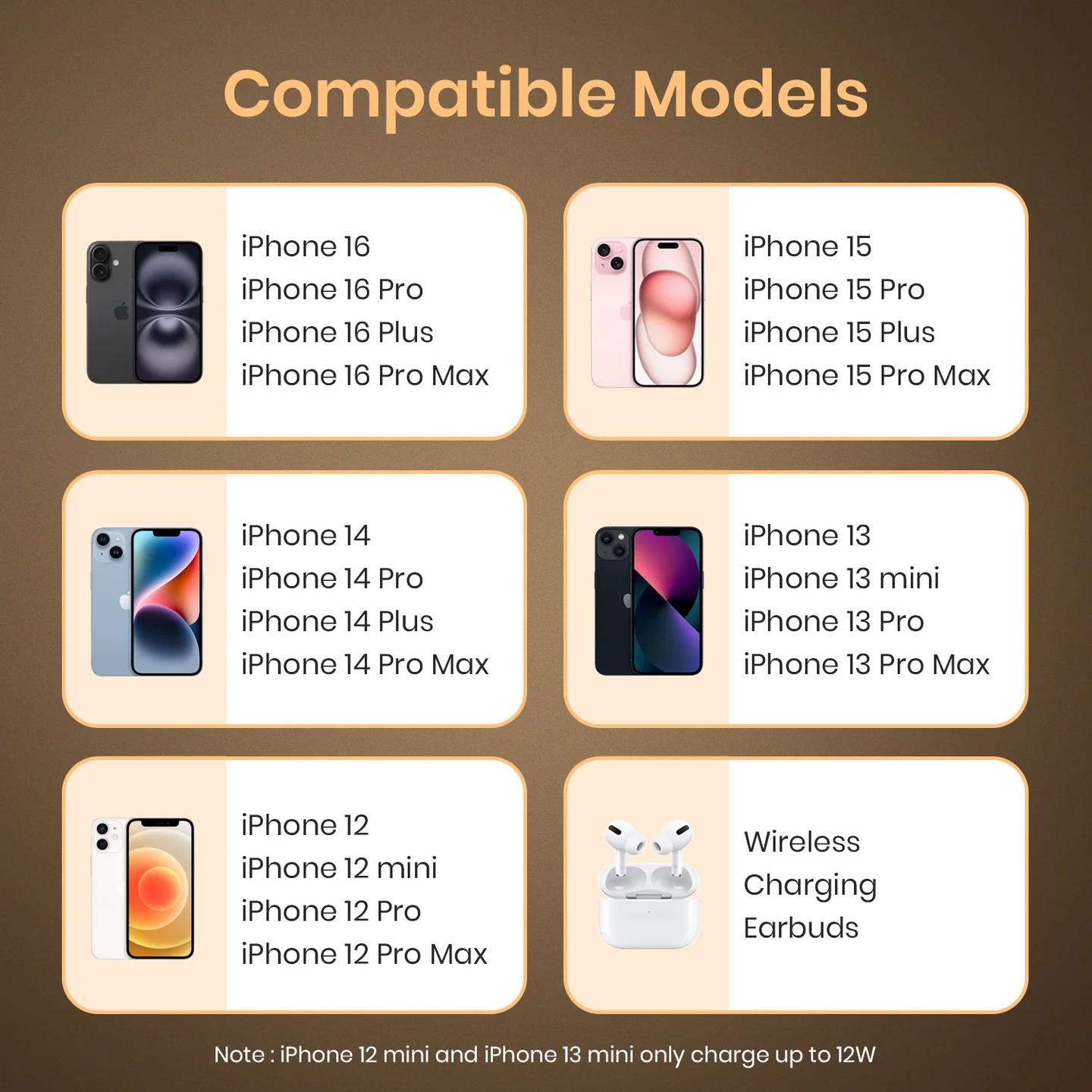 Product name flux Item model number ‎POR-2132 Special features ‎LED Night Lights, MagSafe Compatible, 15W Max Output, Type C Input Other display features ‎Wireless Colour ‎Black Manufacturer ‎Portronics Digital Pvt. Ltd. Country of Origin ‎China Item Weight ‎150 g Experience lightning-fast charging with the Portronics Flux 15W Qi2 Wireless Charger. MagSafe compatible, it’s designed for seamless charging of iPhone 16, 15, 14 series. Ideal for iPhone 16/16 Plus/16 Pro/16 Pro Max, iPhone 15/15 Plus/15 Pro/15 Pro Max, and iPhone 14/13/12. Get the best charging experience in sleek black. Portronics Flux 15W Qi2 Wireless Charger 15W Fast Wireless Charging: Enjoy fast and efficient charging with our 15W MagSafe charger, designed for the latest iPhone models and other Qi 2-compatible devices. Perfect for a quick power boost anytime! Built-In Night LED Light: Multi-functional as both a charger and a night lamp. Features a soft glow LED light with 3 adjustable brightness levels to suit your bedtime needs. 3-Level Brightness Control: Customize the brightness of the LED for relaxation, or sleeping. The dim light will not interfere with your sleep but enhances the functionality when in use at night. Qi2 Compatible and MagSafe Technology: Seamlessly charges Qi2-enabled devices and accessories using MagSafe, with the stable and secure magnetic alignment to charge your devices. Designed specifically for iPhone 12/13/14/15/16 series, utilizing MagSafe to enable easy charging and an impeccable design for those who own iPhones. Compact, Safe & Travel-Friendly Design: Sleek and lightweight, perfect for your bedside table, office desk, or travel bag, with built-in temperature control, overcurrent protection, and short circuit safeguards for worry-free charging anywhere.
