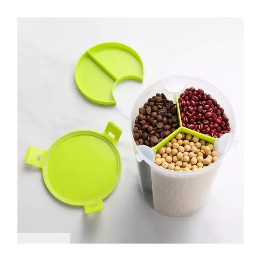 Pack of 1: This set includes one 3 Section Storage Jar, providing you with a single, comprehensive storage solution for your kitchen needs. The multipurpose design caters to various storage requirements, helping you keep your kitchen tidy and well-organized.