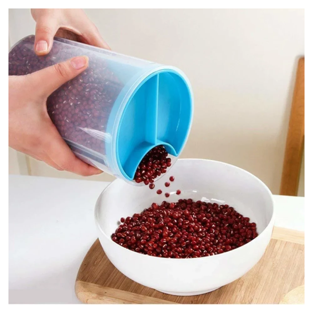 Capacity: With a substantial capacity of 1500 ml, each section provides ample space to store ingredients such as grains, pulses, snacks, or any other kitchen essentials. The three sections offer versatility in organizing different items within the same jar.