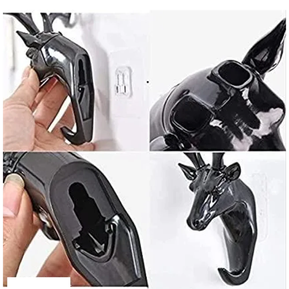 Introducing the Deer Head Hanging Hook, a stylish and practical solution to add both decoration and functionality to your living space. This pack of 4 black hooks, proudly made in India, is crafted from durable plastic, offering a versatile and convenient way to organize your belongings.