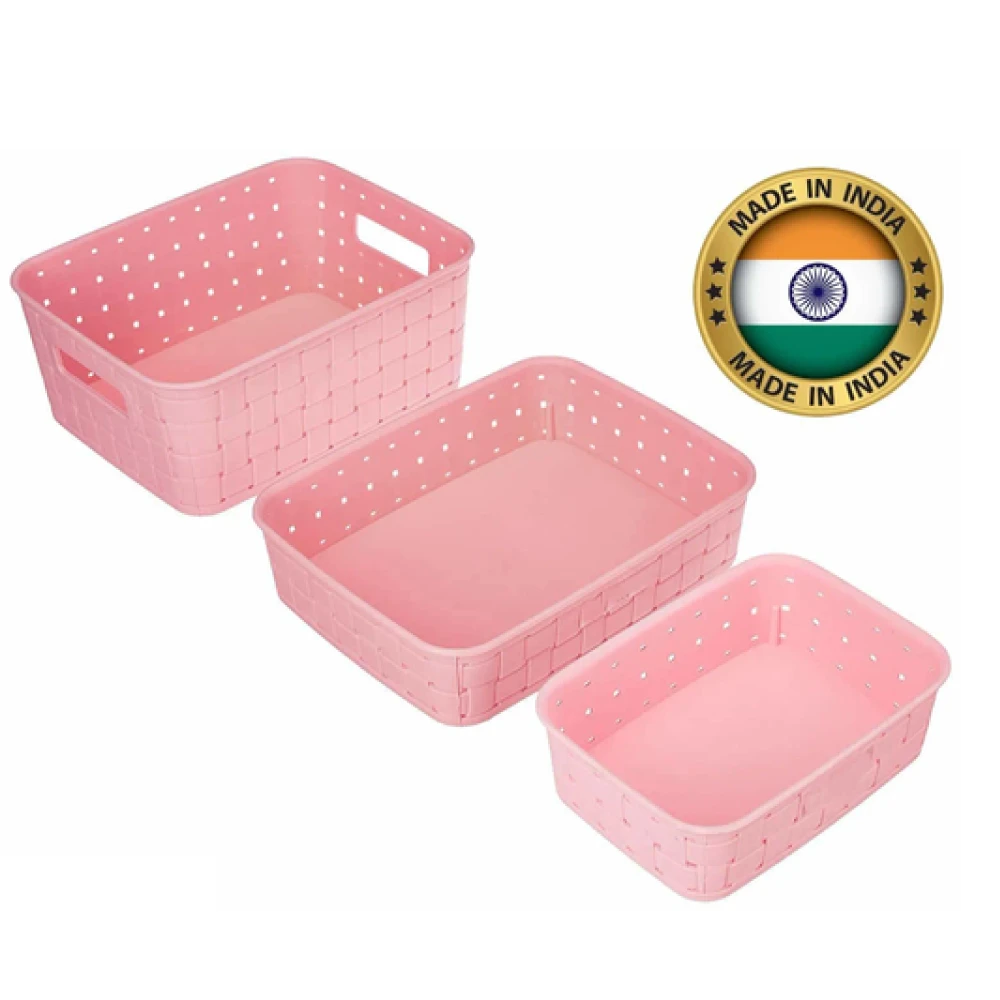 Pack of 1: The pack includes three Fruits and Vegetables Baskets in a delightful pink color, providing ample storage capacity for your kitchen essentials. This set of three ensures that you have enough baskets to accommodate a variety of fruits and vegetables.