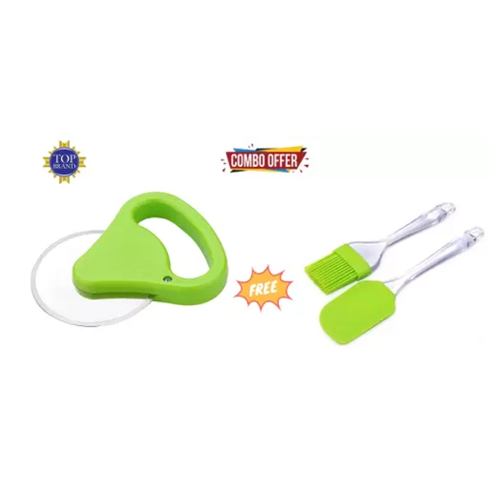 Name : Stainless Steel Pizza Cutter & Multi-Purpose Silicone Durable Easy Use | Oil Cooking Brush for Grilling, Cooking,| Brush for Cooking | Cooking Tools | Multicolor - Set of 2