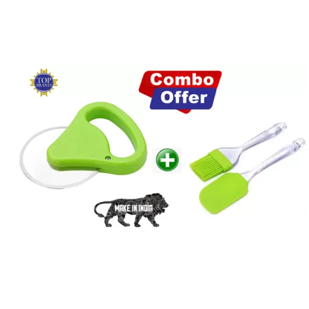 Name: Stainless Steel Pizza Cutter & Multi-Purpose Silicone Durable Easy Use | Oil Cooking Brush for Grilling, Cooking | Brush for Cooking | Cooking Tools | Multicolor - Set of 2