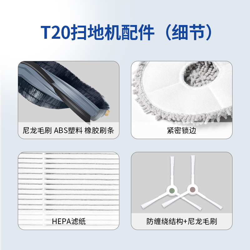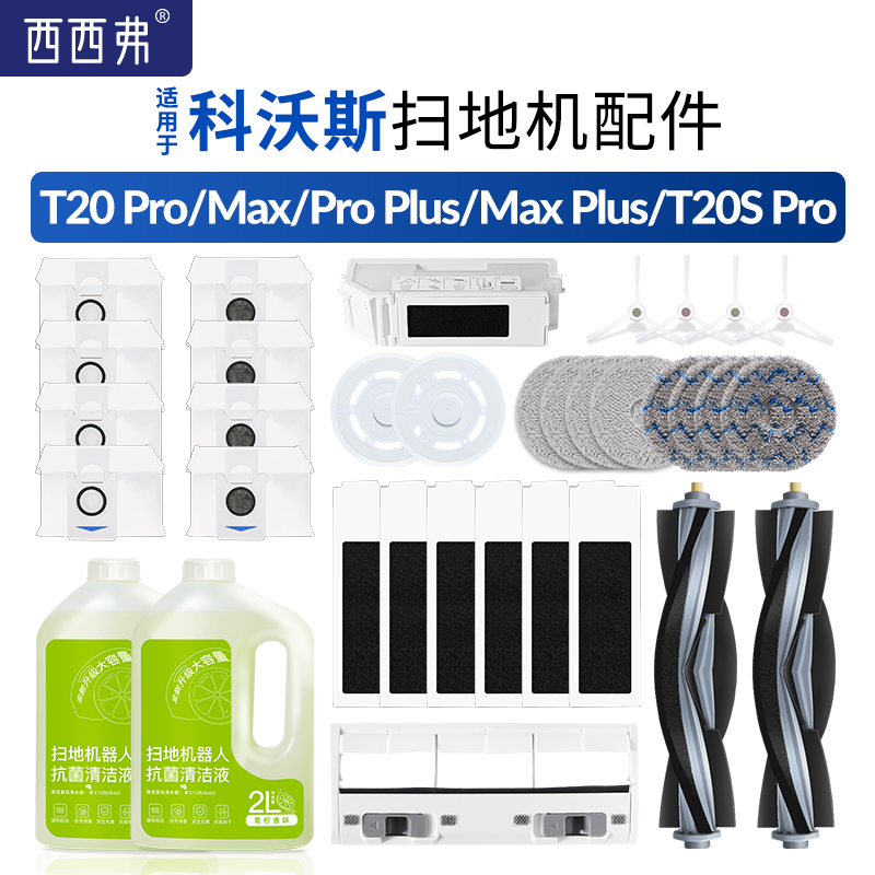 Applicable to Ecovacs T20 Pro Sweeping Robot Accessories Dust Collection Bag Filter Element X1s ProPlus Mop Rolling Brush -Bacteriostatic cleaning solution 1L * 1