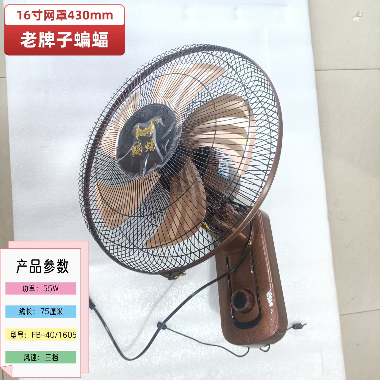 Bat Electric Fan For Home Wall Fan Strong Wind Wall Mounted Fan Wall Mounted Fan 16-Inch 18-Inch Old Brand Electric Fan Wall Fan -1 set of 16 inch/1605 black gold/no original box