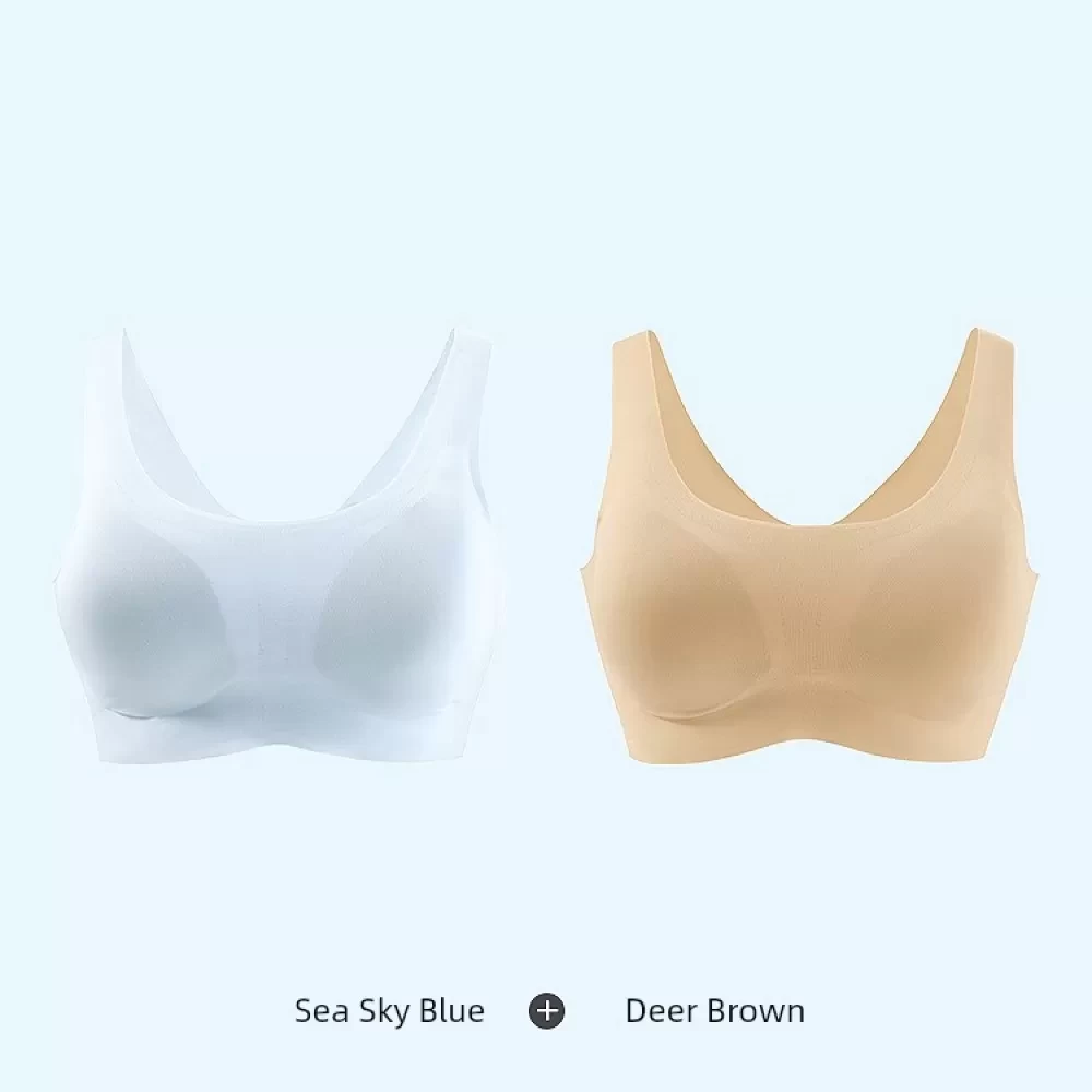 Beautiful Back Small Chest Push-up Thin No Steel Ring Sports Underwear -Sea blue + deer brown (two pieces)
