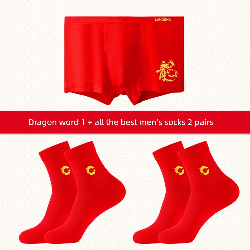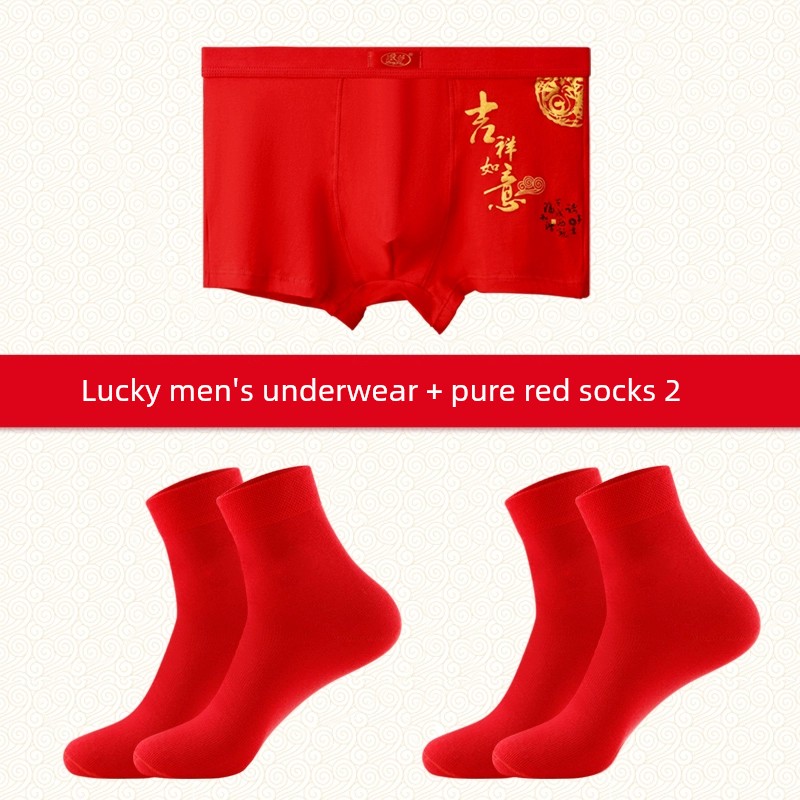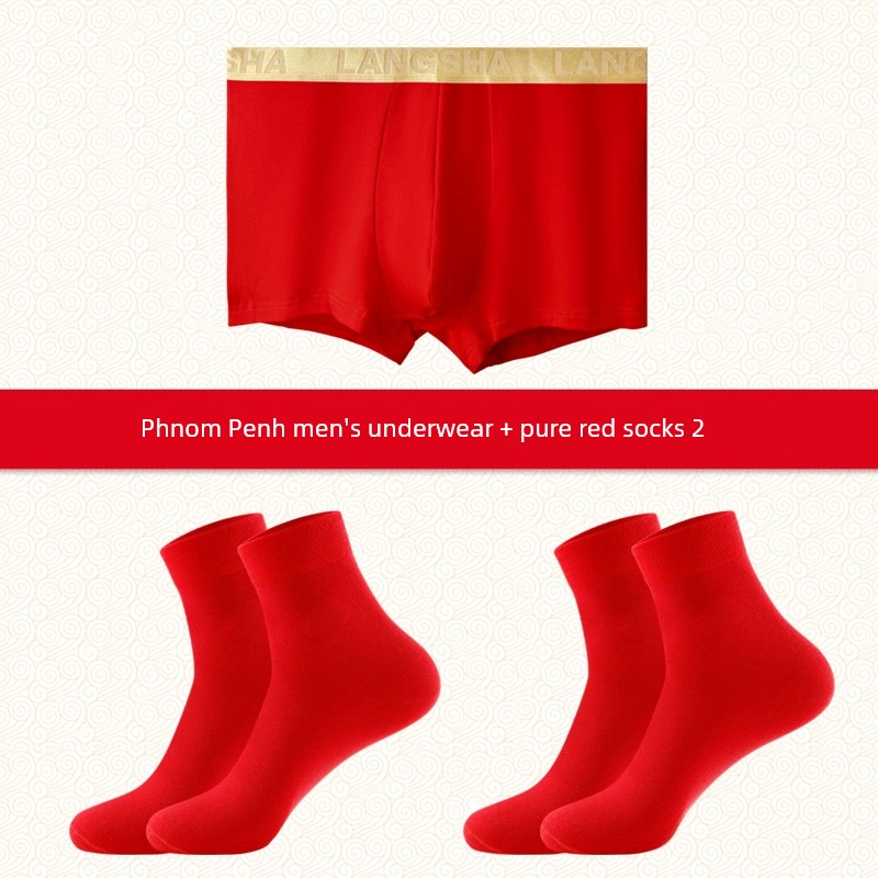 Langsha Red Animal Year Rabbit Wedding Men Underwear Pure Color Paragraph Pure Red Socks Pairs