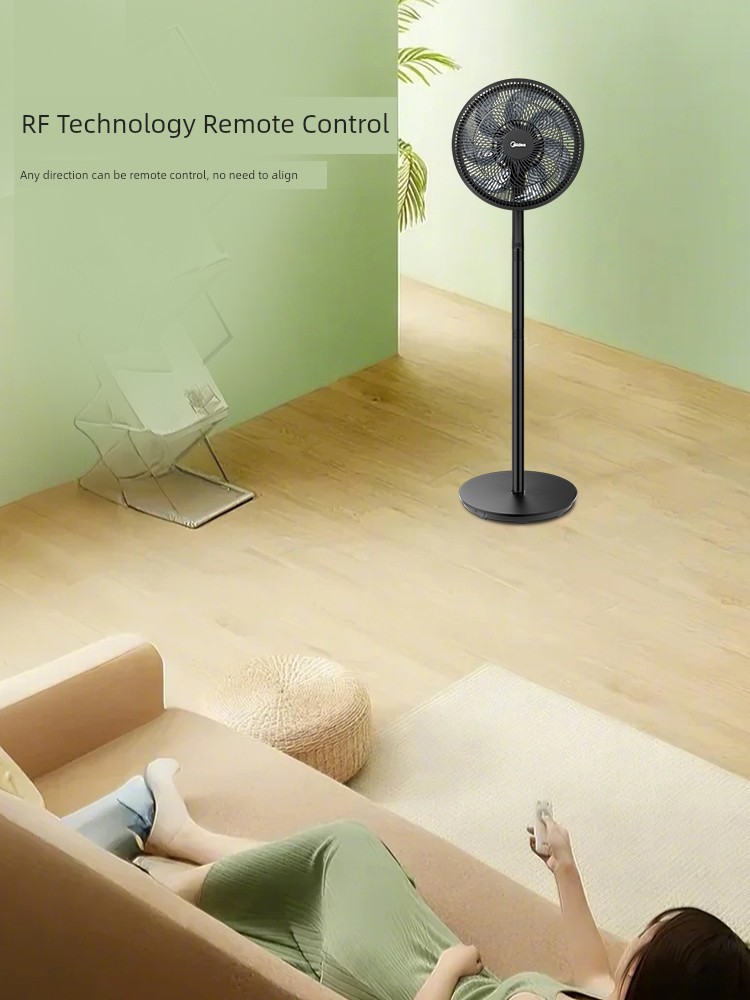 Midea Electric Fan Floor Fan For Home Small Light Tone Dormitory Remote Control Large Wind Bedroom Stand Vertical Fan 2025 -Yaoshi Black(Classic)