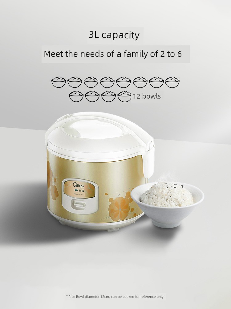 Midea Rice Cooker For Home 3L Rice Cooker 1 Mini 2 Small 4-Person Capacity Official Flagship Authentic for One Person -Champagne Gold 〗(3L)