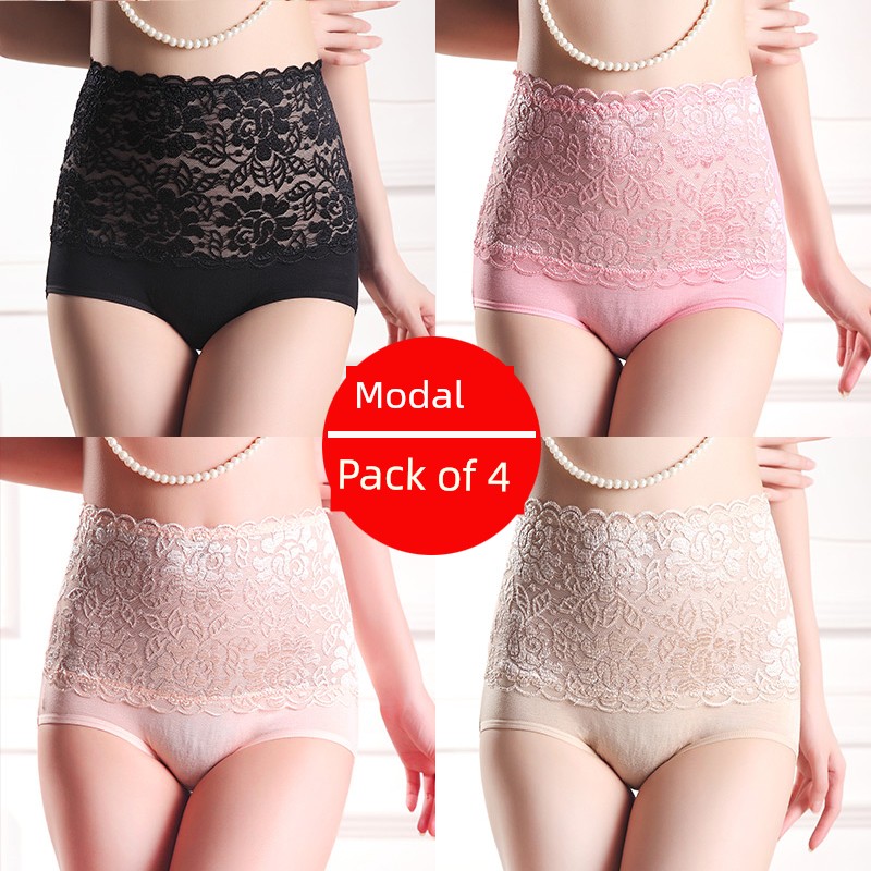 Modal High Waist Belly Contracting Sexy Bamboo Charcoal Fiber Underwear -Shrimp red + shrimp color + apricot + black
