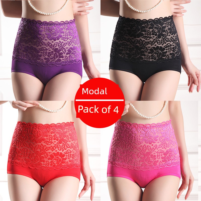 Modal High Waist Belly Contracting Sexy Bamboo Charcoal Fiber Underwear -Dark purple + black + bright red + rose red