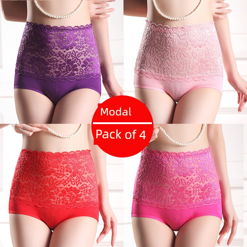 Modal High Waist Belly Contracting Sexy Bamboo Charcoal Fiber Underwear -Deep purple + shrimp red + bright red + rose red