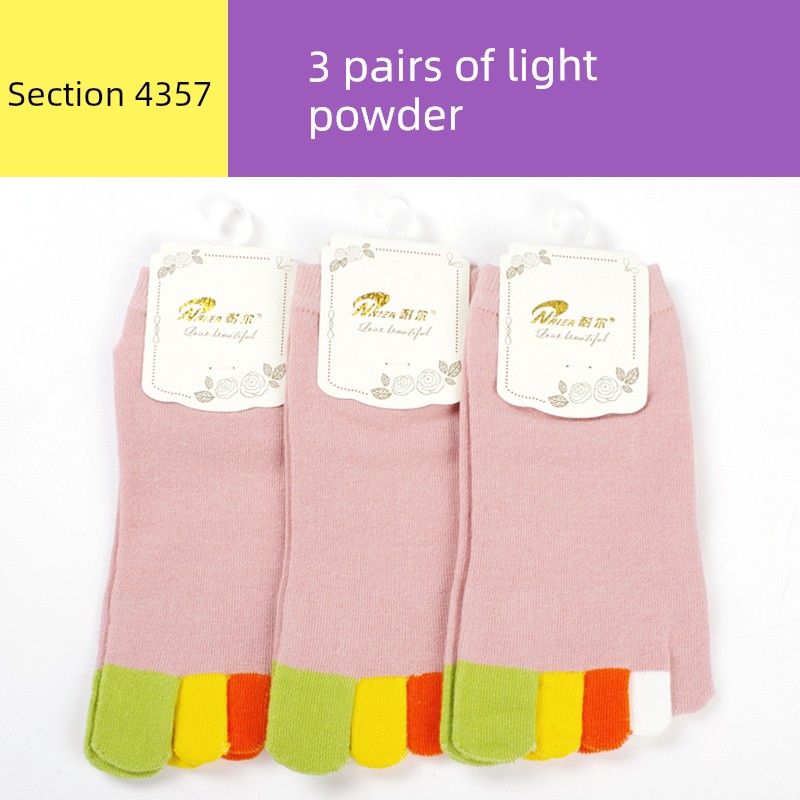 Naier 3 Pairs Women's Low-Cut Liners Socks Pure Cotton Deodorant Five Fingers -3 pairs of light powder -4357 models
