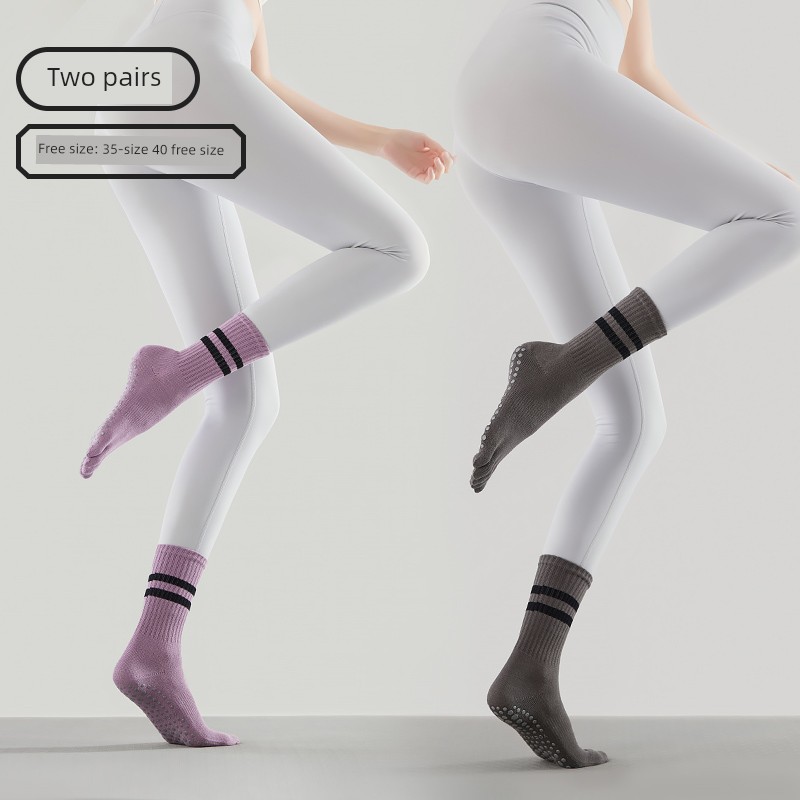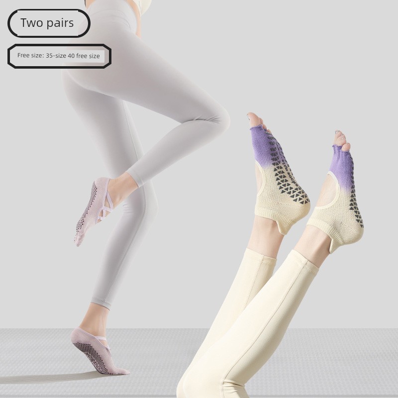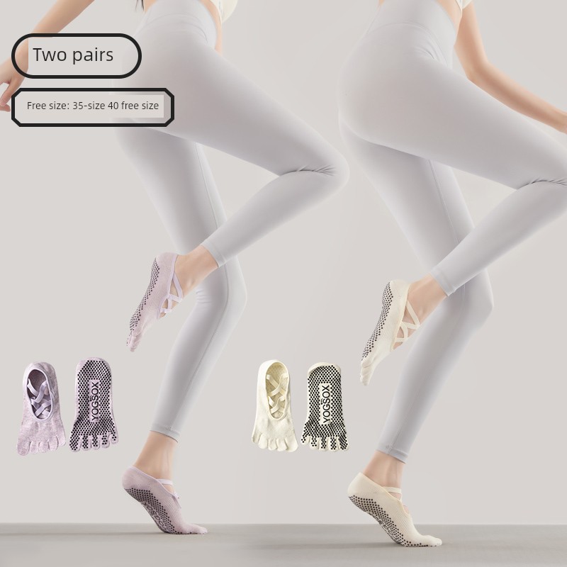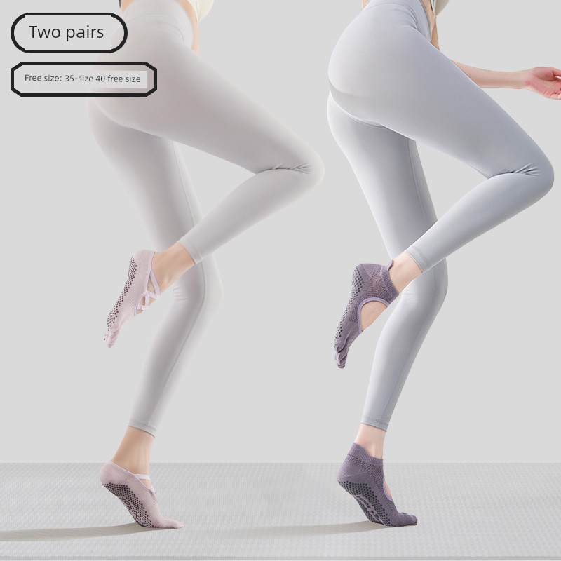 Non-Slip Yoga Socks Women's Pilates Socks Five Finger Split Toe Special Women's Indoor Training Fitness Summer New Arrival -[2 pairs of special] Accessible Luxury lavender + ice cream milk White