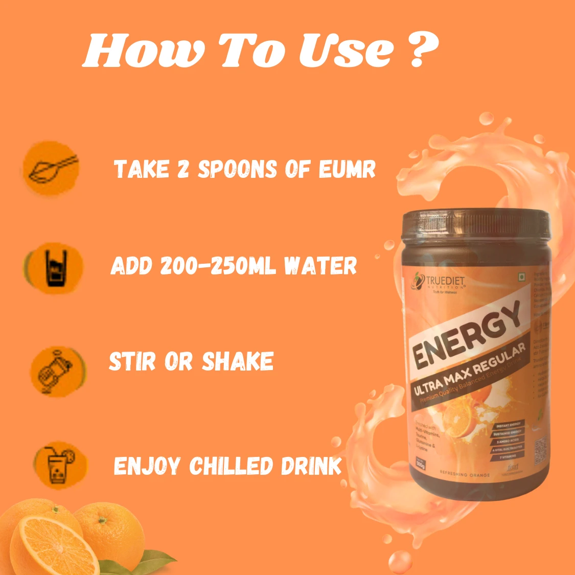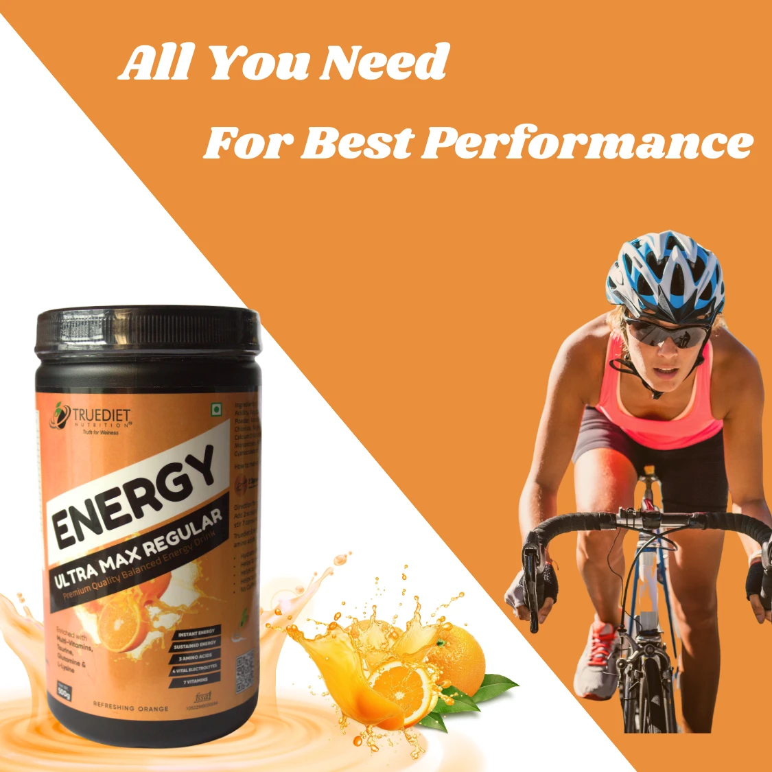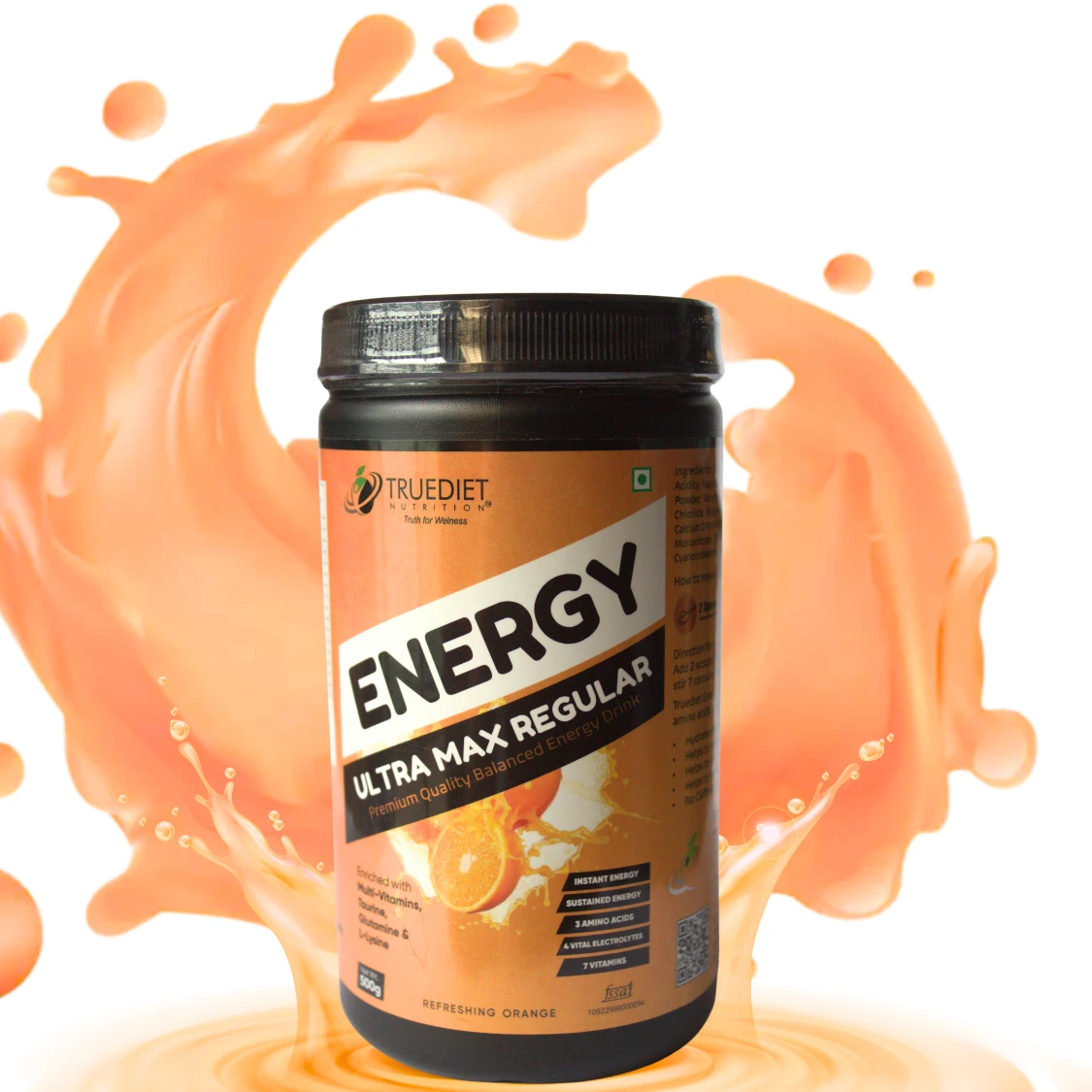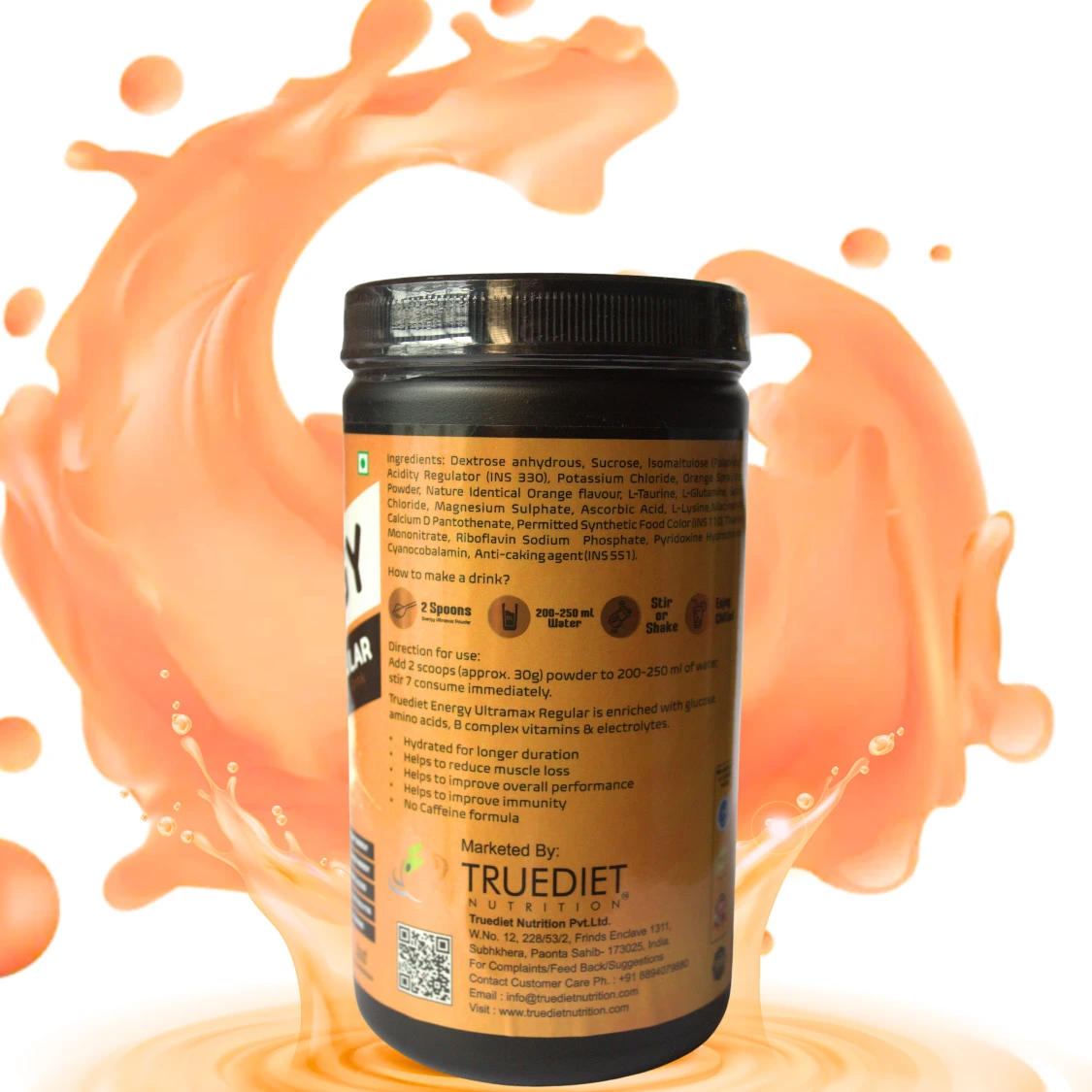 TRUEDIET Energy Ultra Max Regular Premium Quality Balanced Energy Drink 500g Orange Flavored