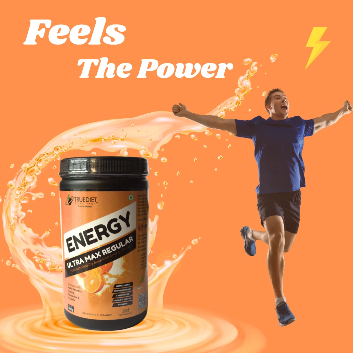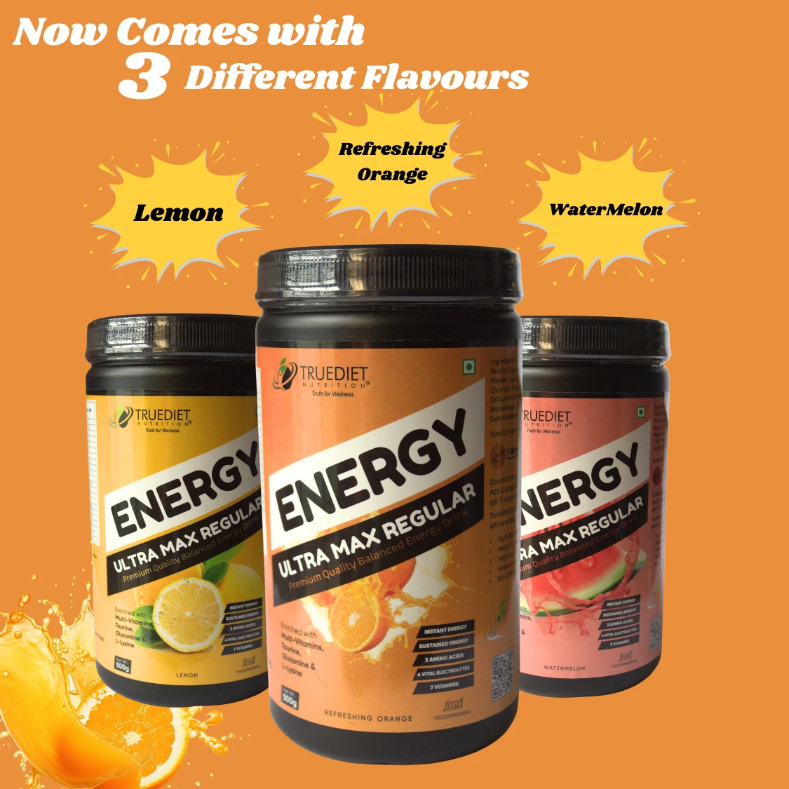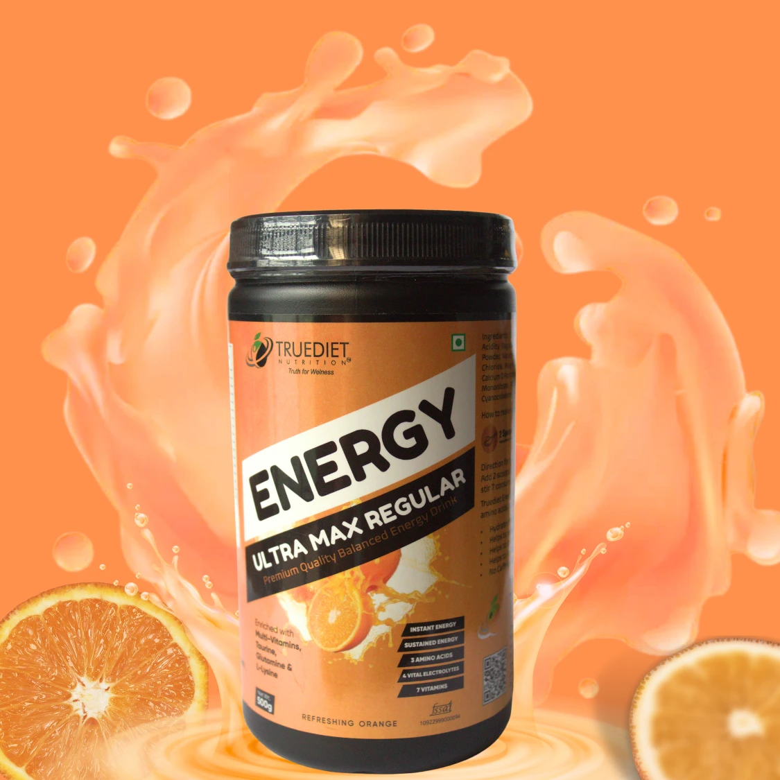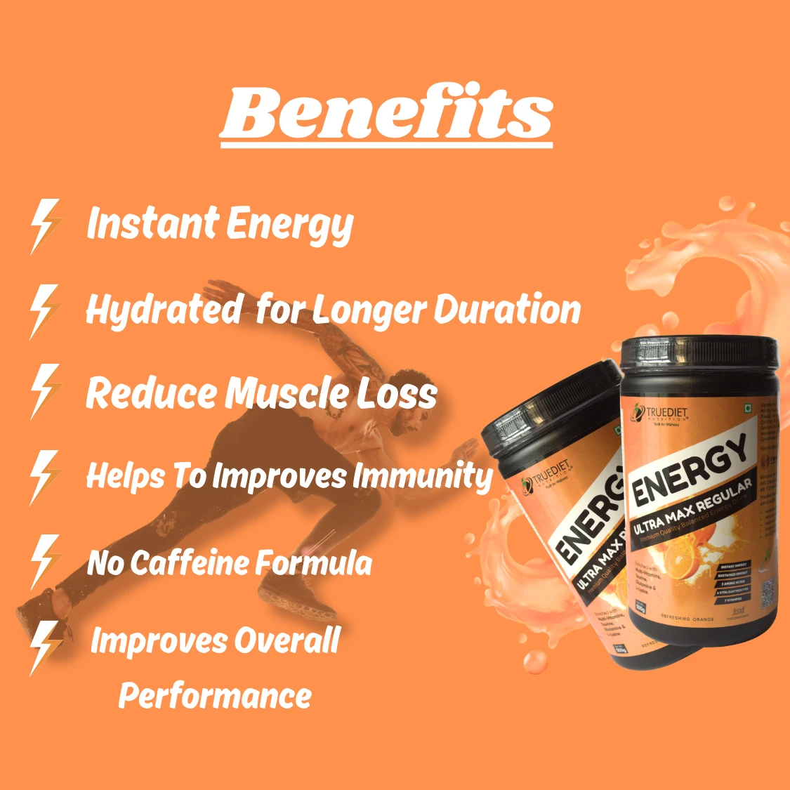 TRUEDIET Energy Ultra Max Regular Premium Quality Balanced Energy Drink 500g Orange Flavored