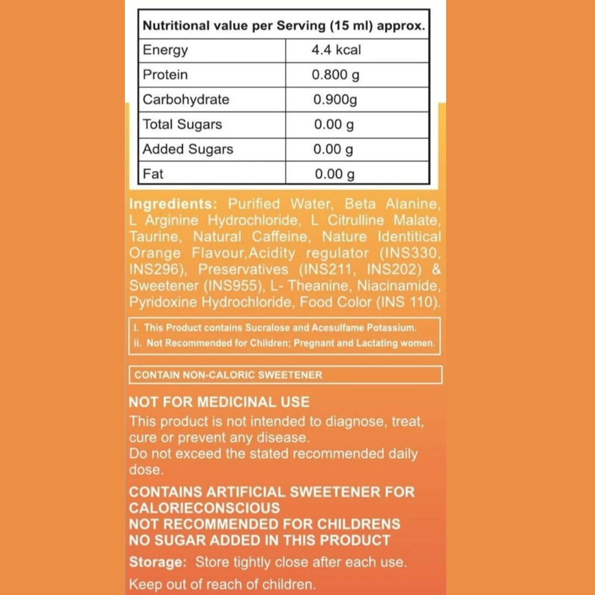 • ✅︎ Juicy Orange Flavor: Delight your taste buds with the refreshing and invigorating taste of juicy orange, making pre-workout consumption a flavorful experience.