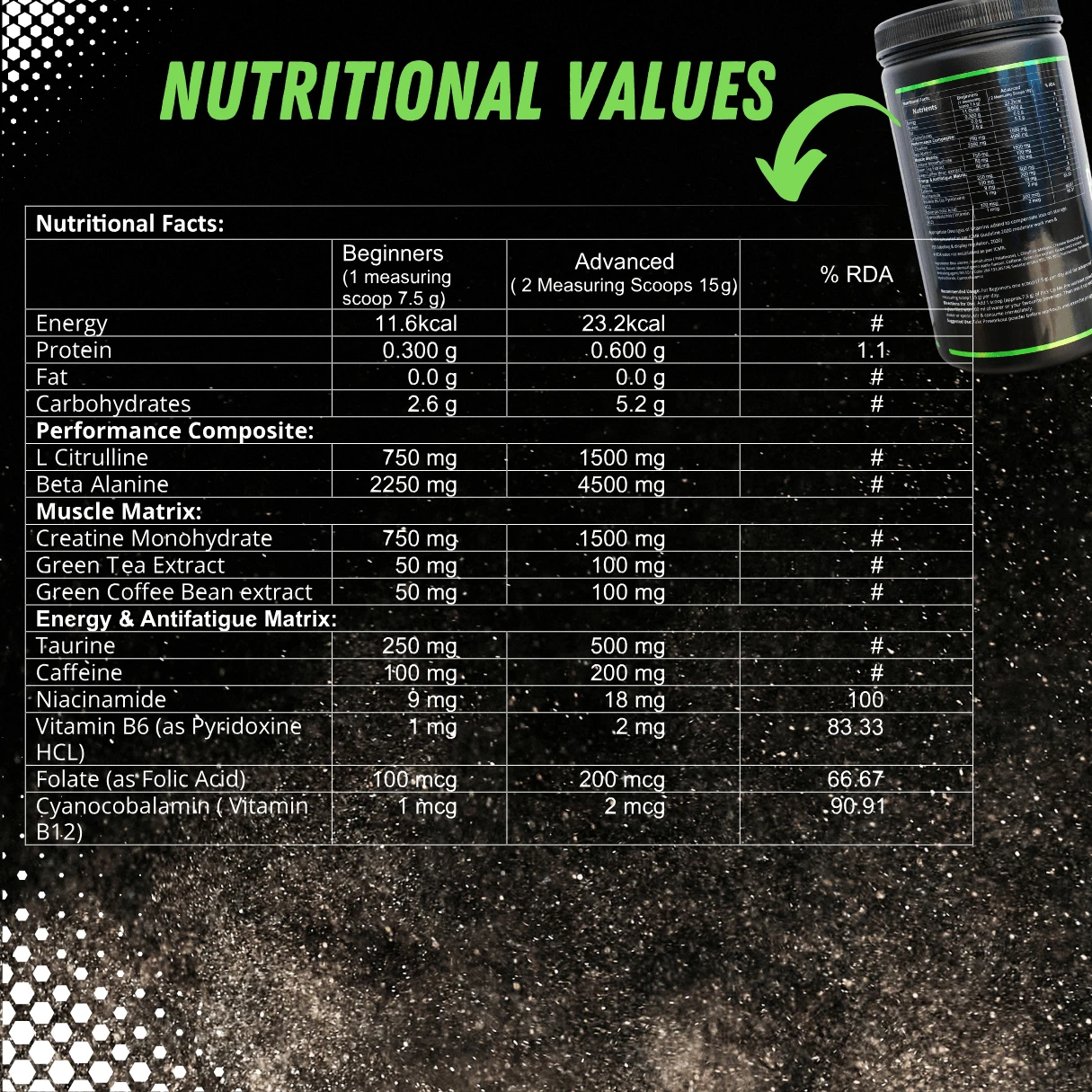 1. Premium Ingredients: Formulated with high-quality ingredients, including L-Citrulline, Taurine, and Caffeine, to enhance energy, focus, and endurance during workouts.