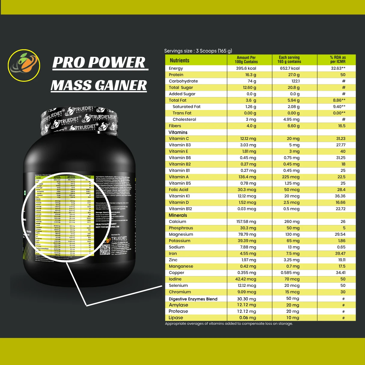 Introducing TrueDiet Pro Power Mass Gainer, the ultimate solution for individuals looking to bulk up and increase muscle mass effectively. Crafted with precision and backed by science, this premium mass gainer is designed to support your muscle-building goals with ease.
