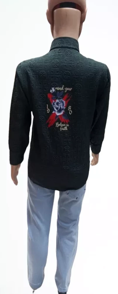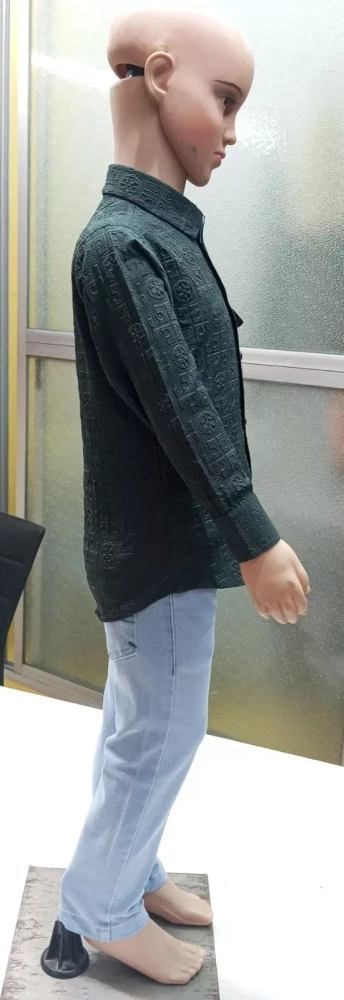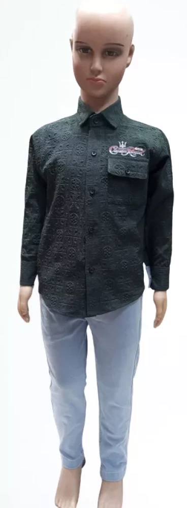 EMBOSED COTTON LYCRA FABRIC  SHIRT AND PANT WITH KNITTED  LYCRA SET