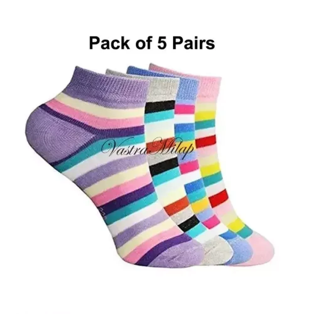 Step up your sock game with the Women's Multicolor Striped Ankle Length Socks Pack of 5. Designed for both comfort and style, these socks are a must-have addition to any wardrobe.