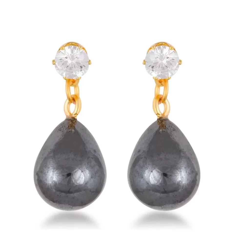 Fancy wear CZ Gold Plated Black Drop Earring for Women and Girls