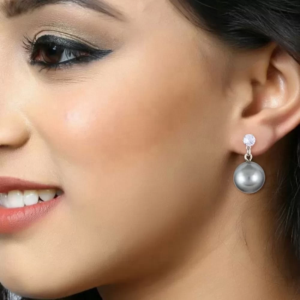 Fancy wear CZ Rhodium Plated Black Drop Earring for Women and Girls