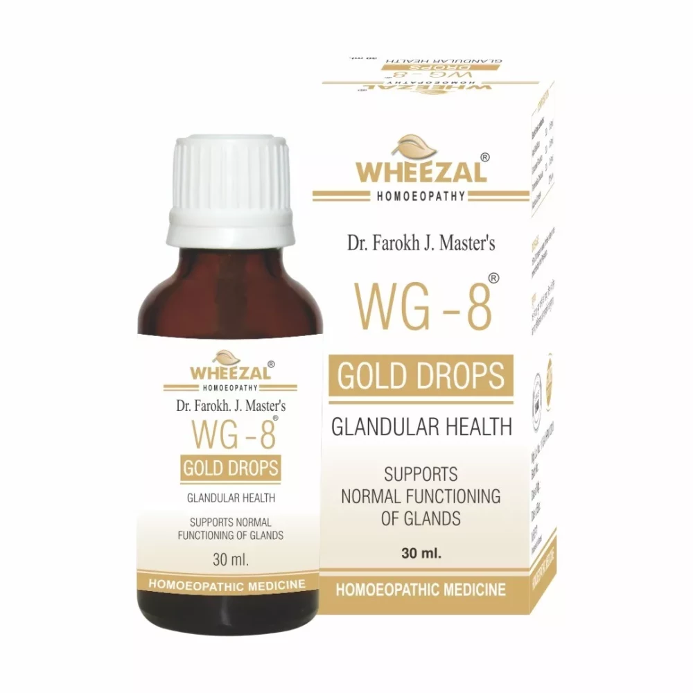Wheezal WG8 Glandular Health Gold Drop is an immunity-boosting drop that can soothe enlarged lymph nodes and boost protection against many diseases. It may help restore the normal functioning of the glands and promote healthy secretions. The homoeopathic ingredients of the product are beneficial for managing enlarged lymph nodes or glands, which are usually a sign of the body fighting against an infection.