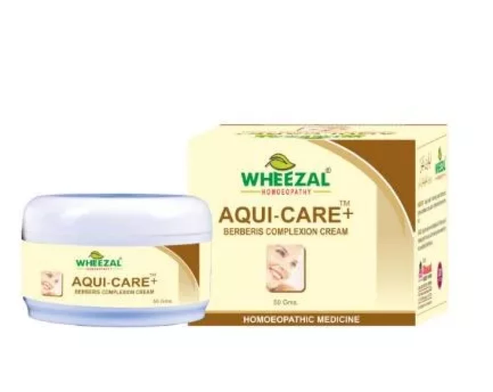 Wheezal AQUI-CARE+ (Complexion Cream) INDICATION: Ideally suited for removing acute blotches and pimples, blackheads, crusts, and scars & renders natural charm to the skin.