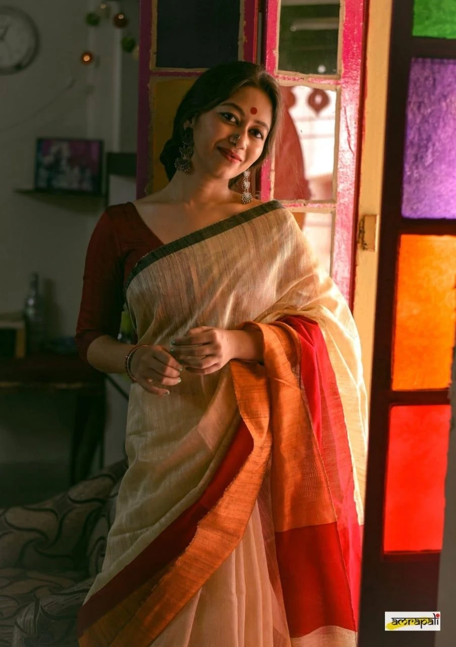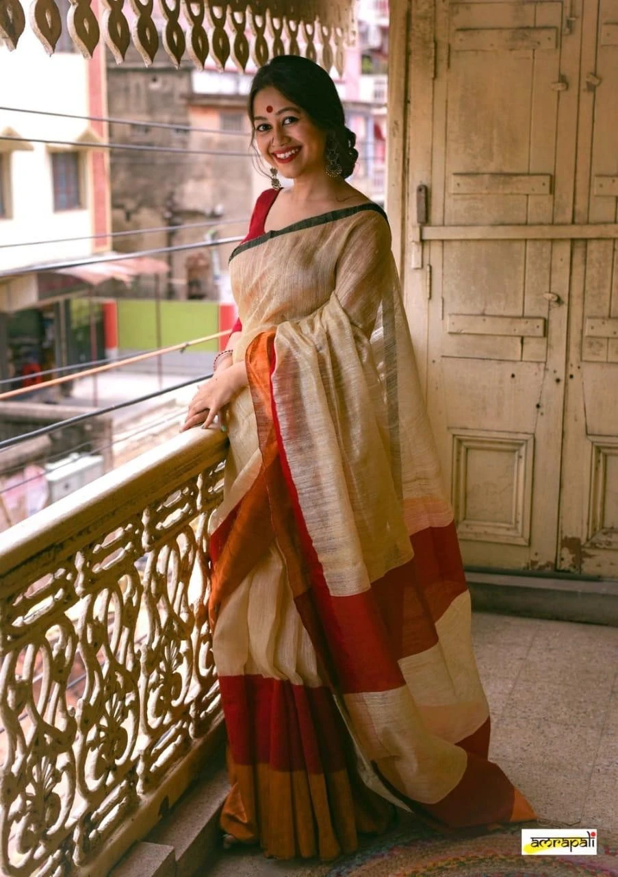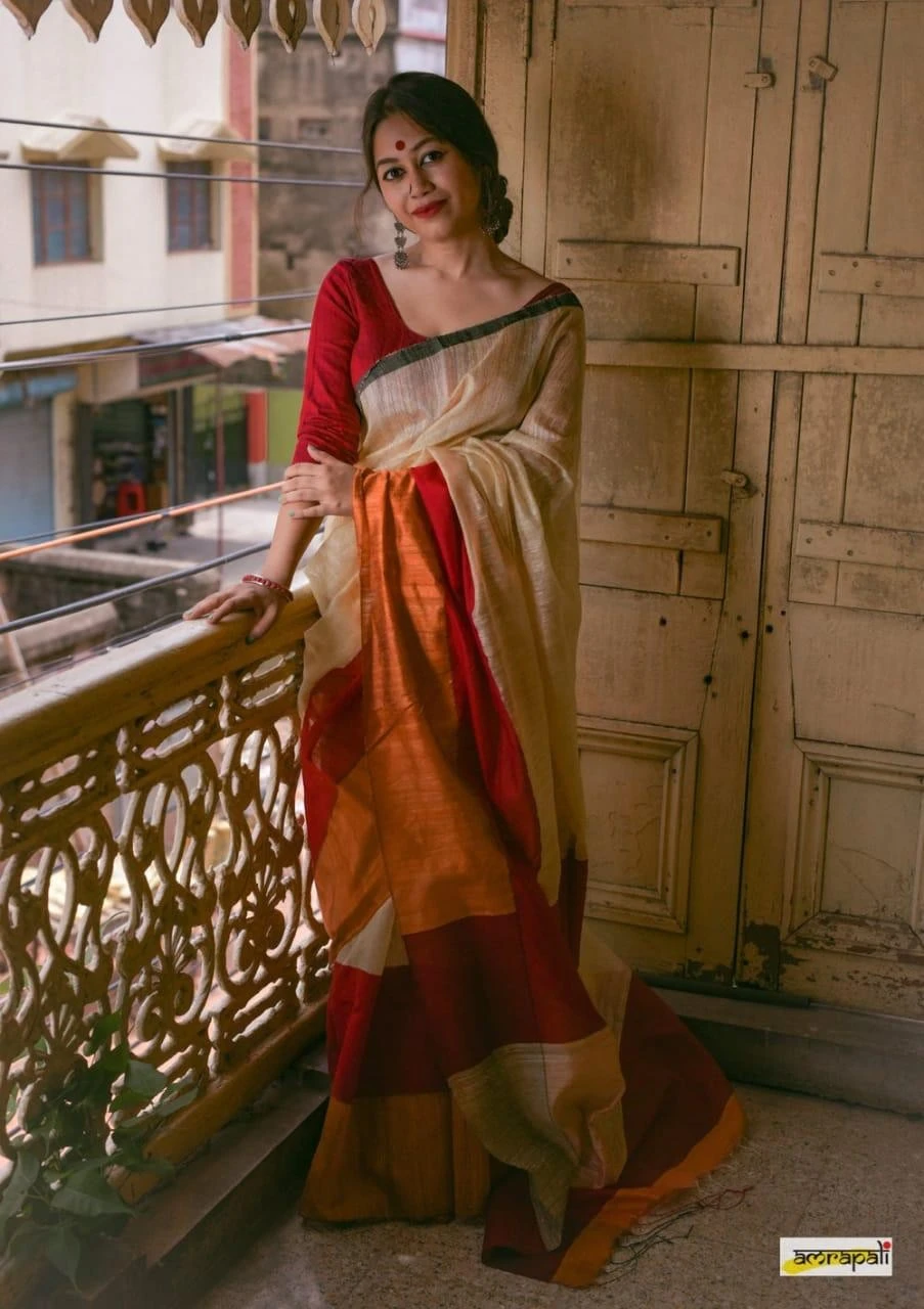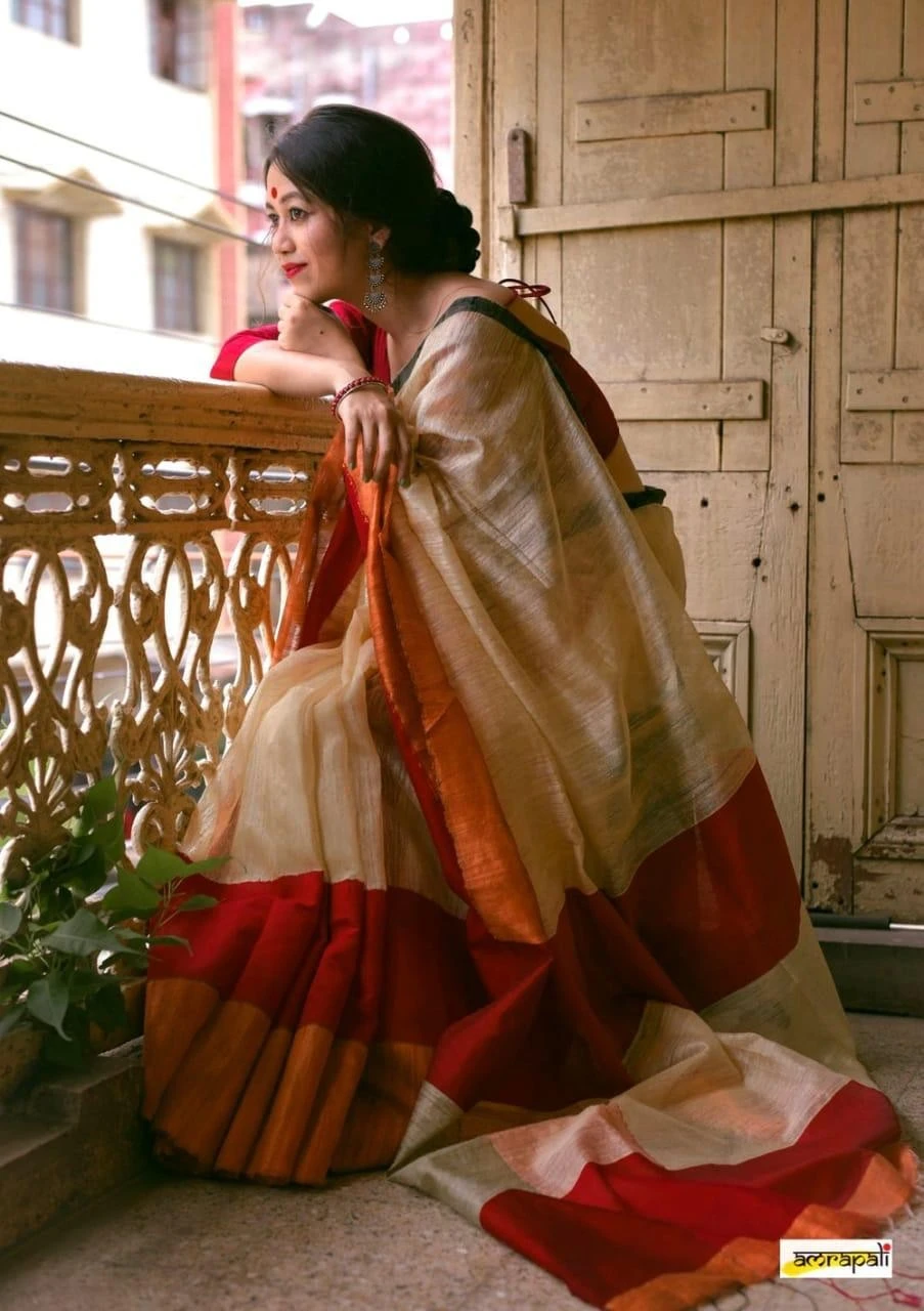 Tag: cotton saree women wear ethnic wear women clothes clothing cream red