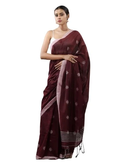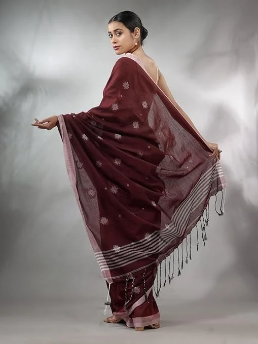 Tag: cotton saree women wear ethnic wear women clothes clothing maroon traditional bengali