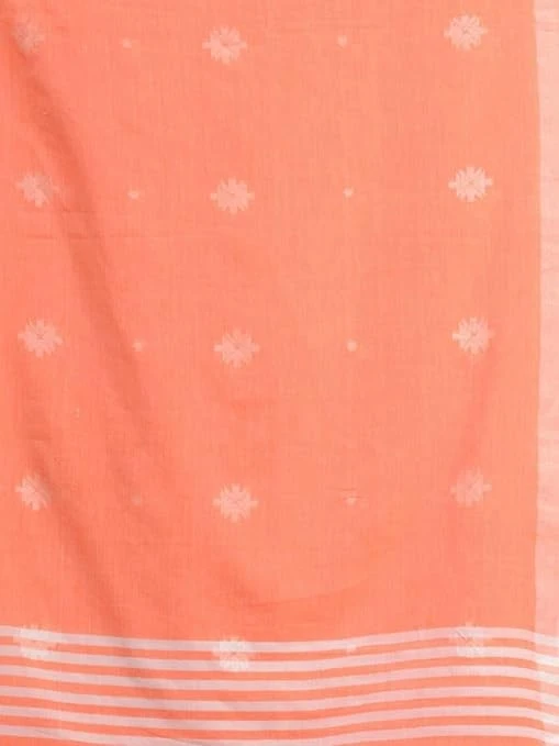 Womens Traditional Orange Bengali Mandir Designed Pure Cotton Saree
