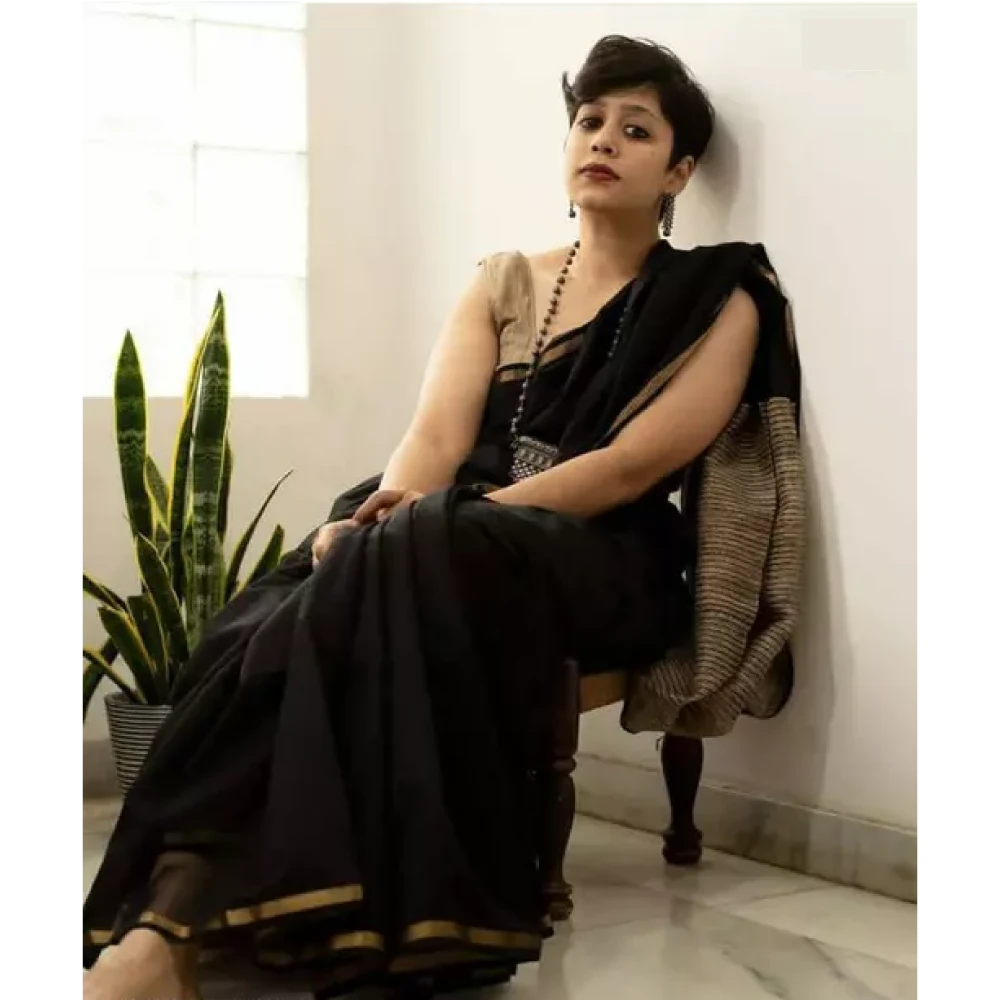 Wonderful Cotton silk Saree With Blouse Piece Black