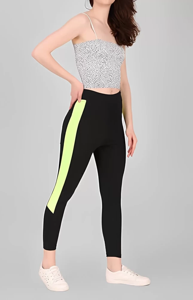 Latest Stylish Womens Black and Green Color Block Leggings