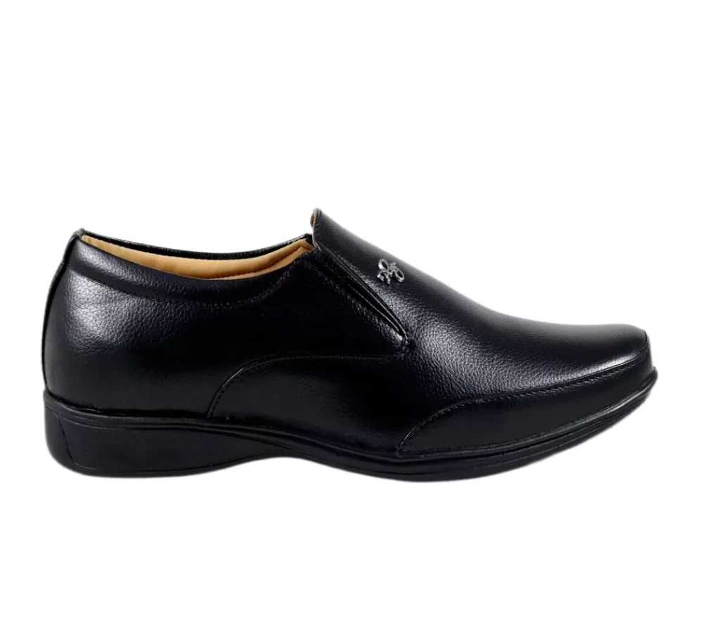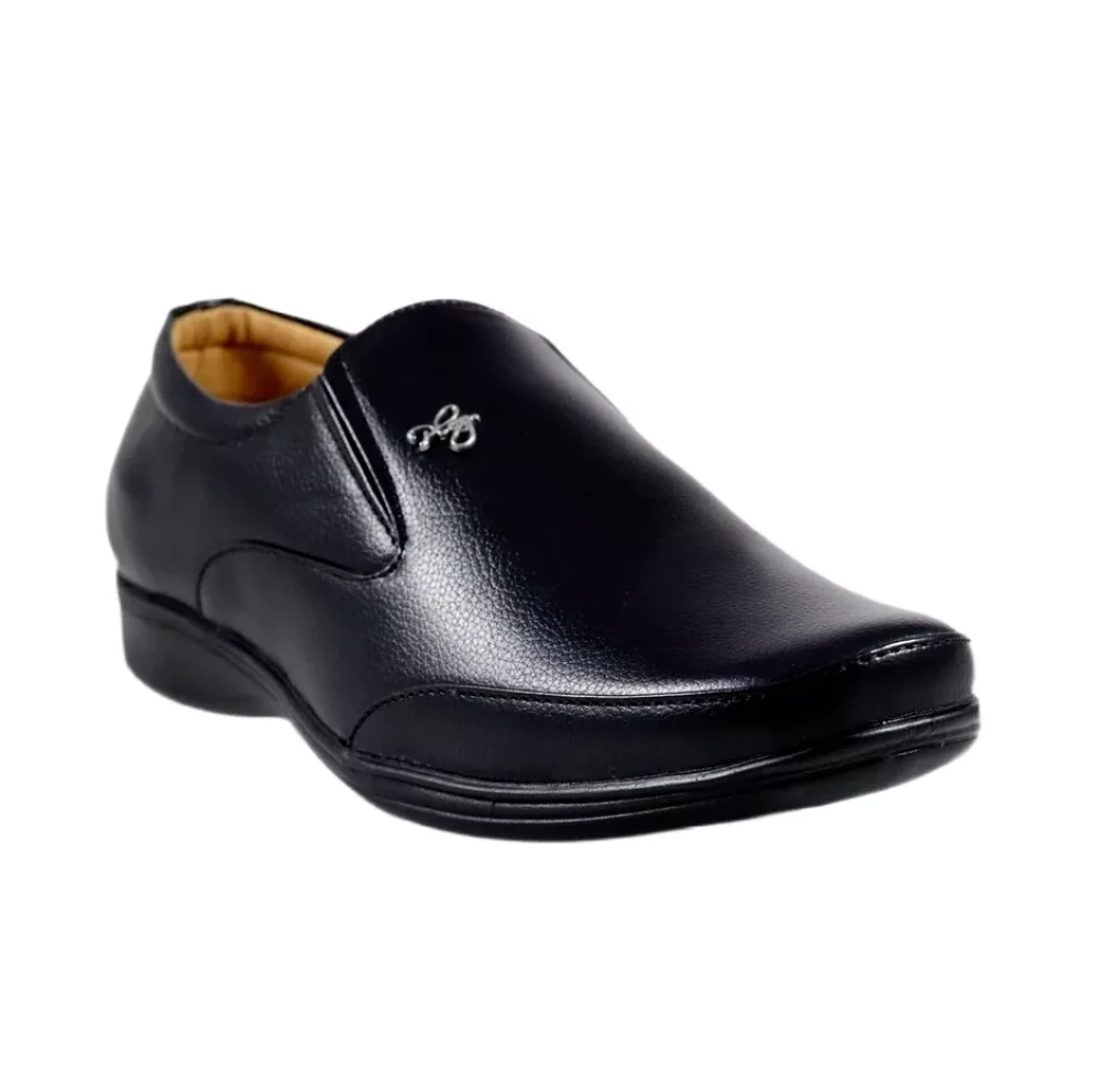 Men Stylish Leather Lace Less Black Formal Shoes