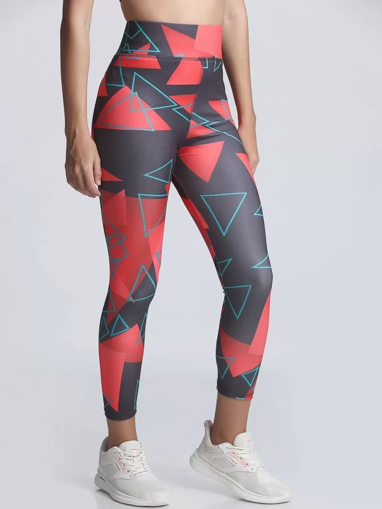 Women Red Triangle Gym Tights Pants