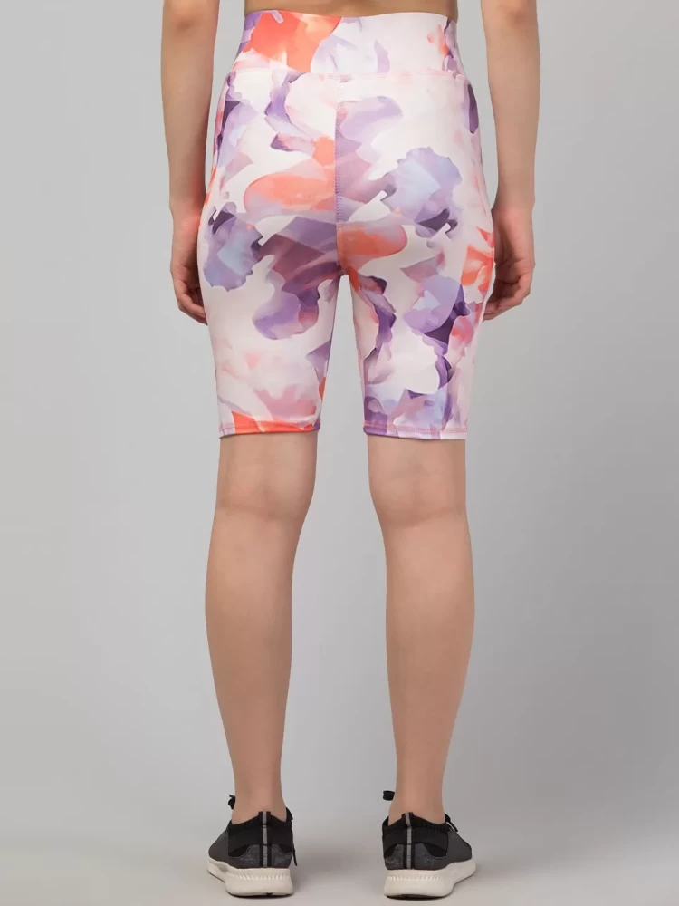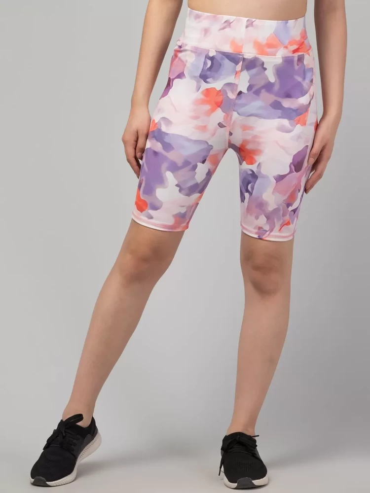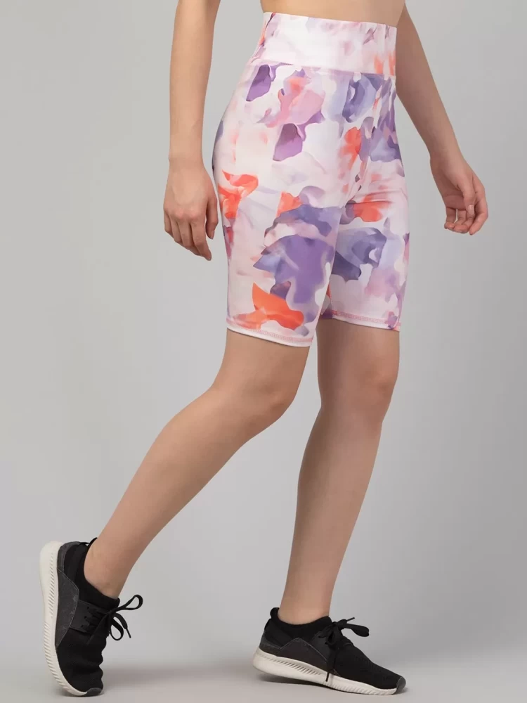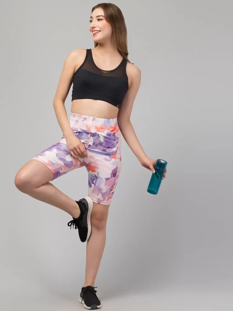 Women's printed sports cycling shorts combine performance and style, offering comfort and durability for cyclists. Made from stretchy, moisture-wicking fabrics like spandex or Lycra, these shorts provide a close, supportive fit that allows for freedom of movement while reducing friction.