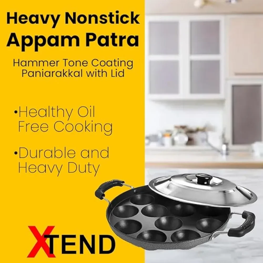 Built to withstand the rigors of daily use, this pan features a scratch-resistant and durable non-stick coating, providing you with long-lasting performance and peace of mind. Whether you're a seasoned cook or a beginner, the Xtend Appam Patra is easy to use and care for, making it a must-have addition to any kitchen. Enjoy hassle-free cooking and delicious results with this thoughtfully designed appam patra.