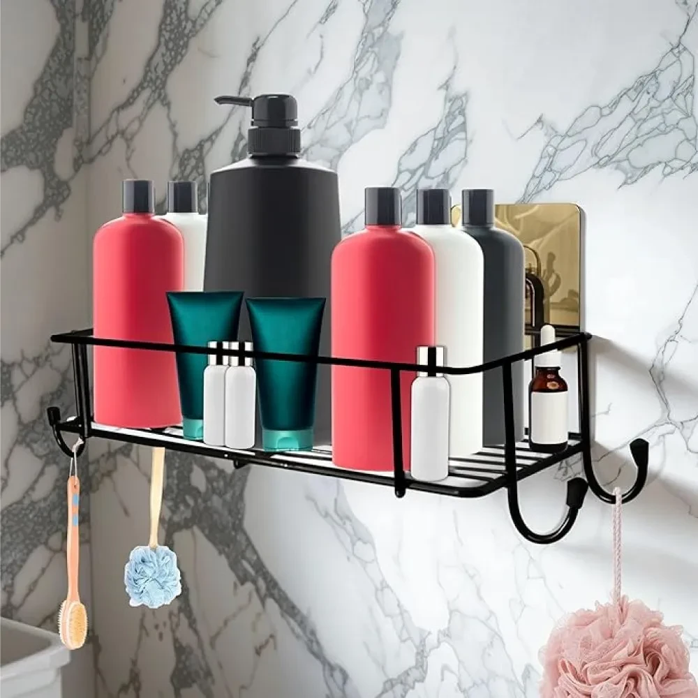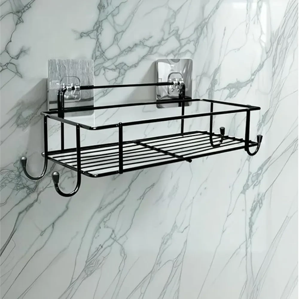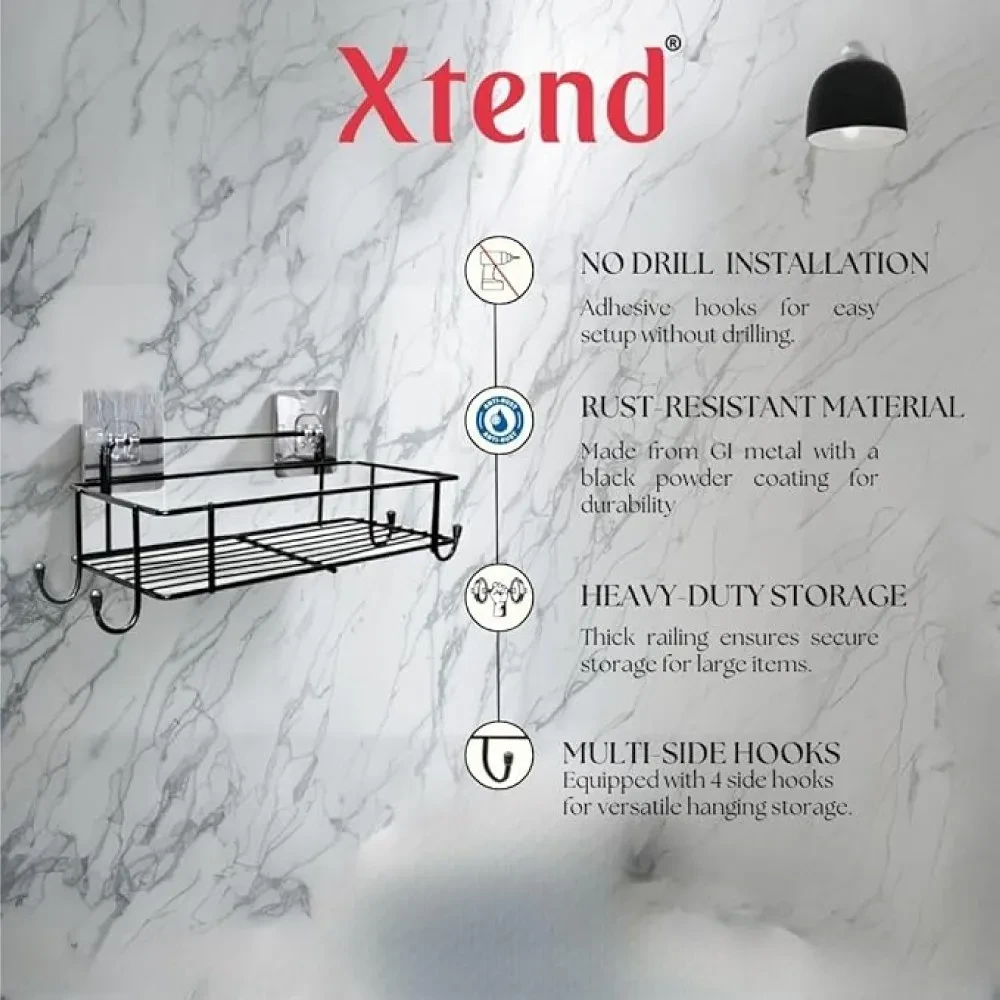 The XTEND Self-Adhesive Bathroom Shelf with Hooks is a sleek and versatile storage solution designed to elevate organization in your bathroom, kitchen, or any room in your home. Made from high-quality GI steel and featuring a durable black powder-coated finish, this shelf is rustproof, corrosion-resistant, and built to last.