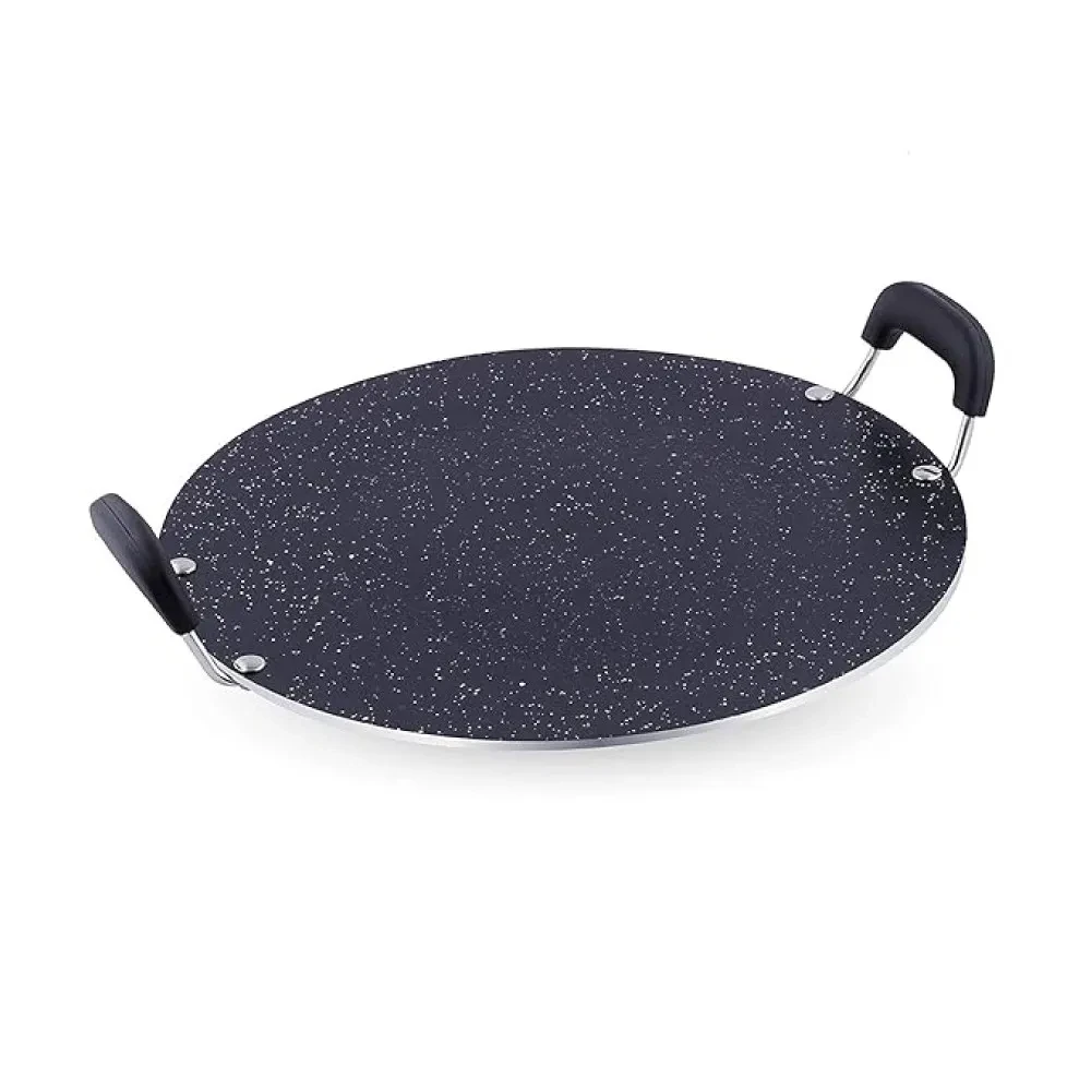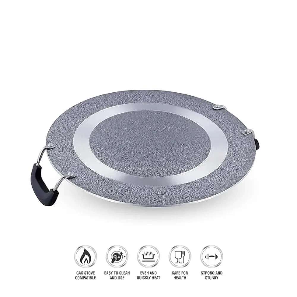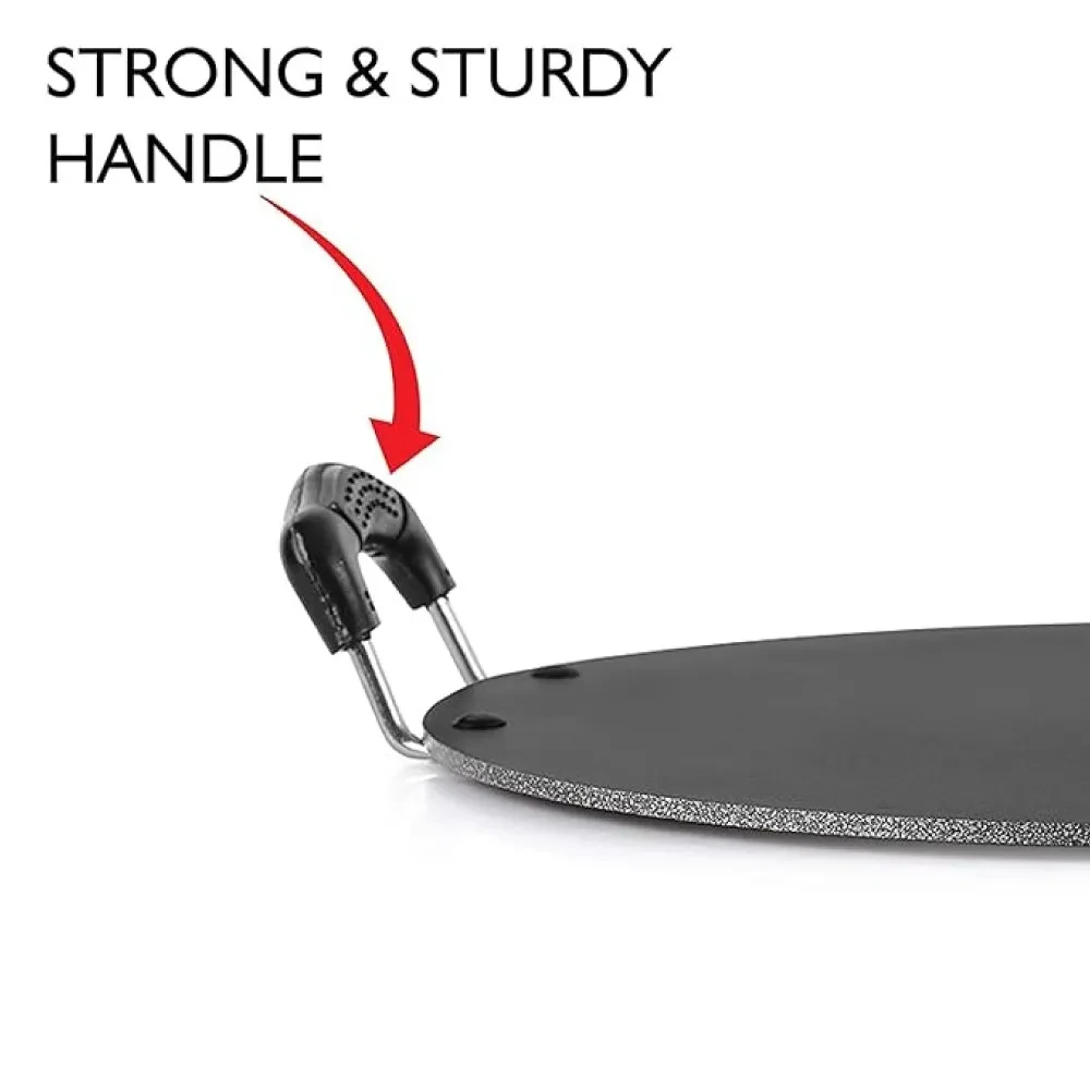 Prepare delicious and healthy dosas with ease using this Non-Stick Aluminum Dosa Tawa. Featuring a 3-layer non-stick safety coating that is PFOA and PTFE free, this tawa allows you to cook with less oil, promoting a healthier lifestyle while preventing food from sticking to the surface.