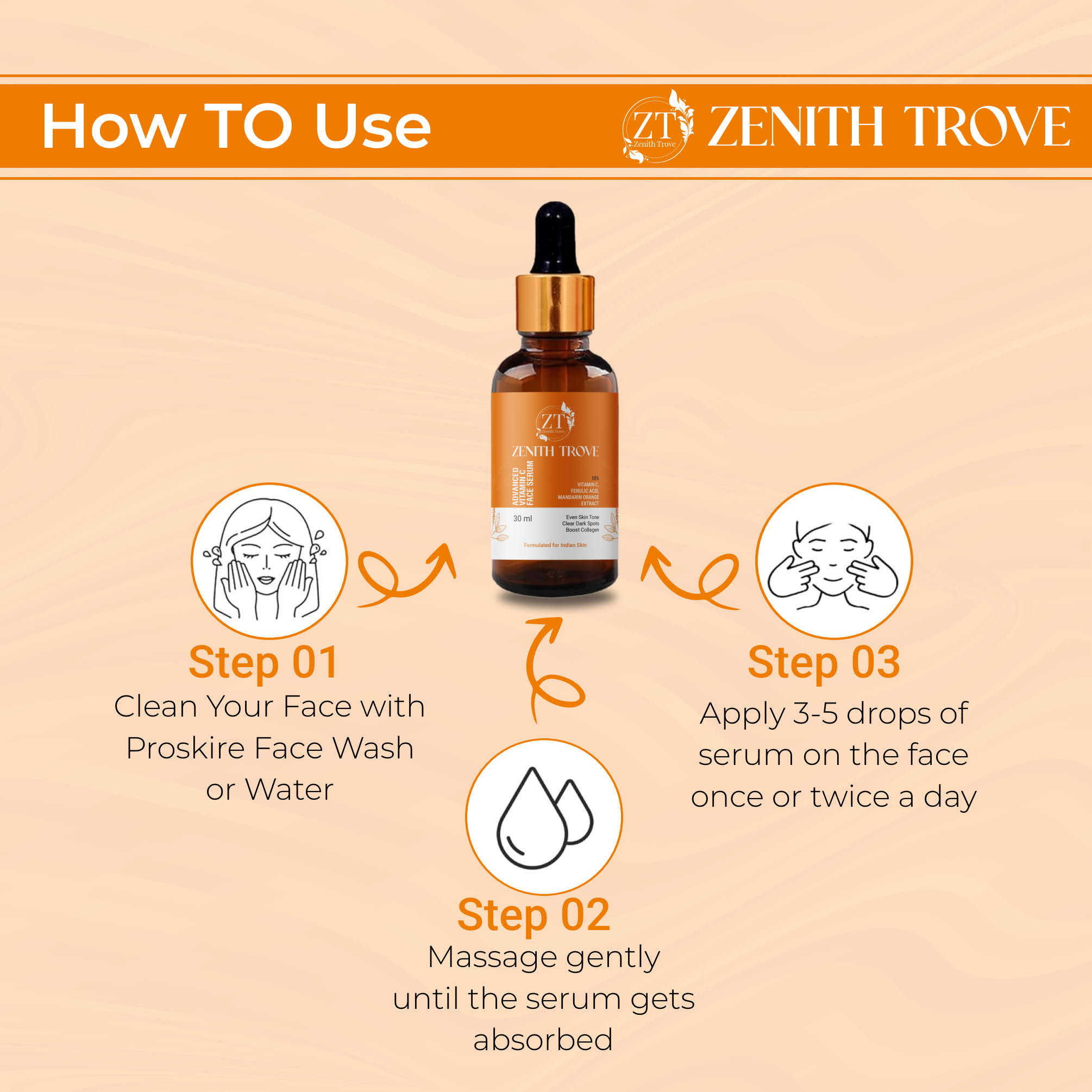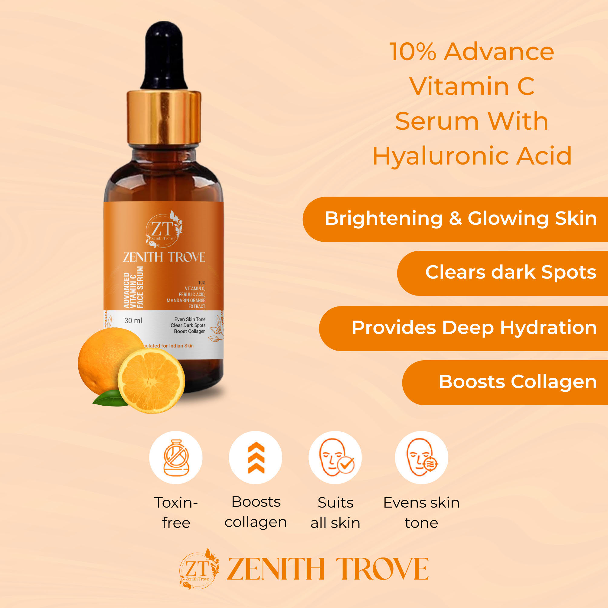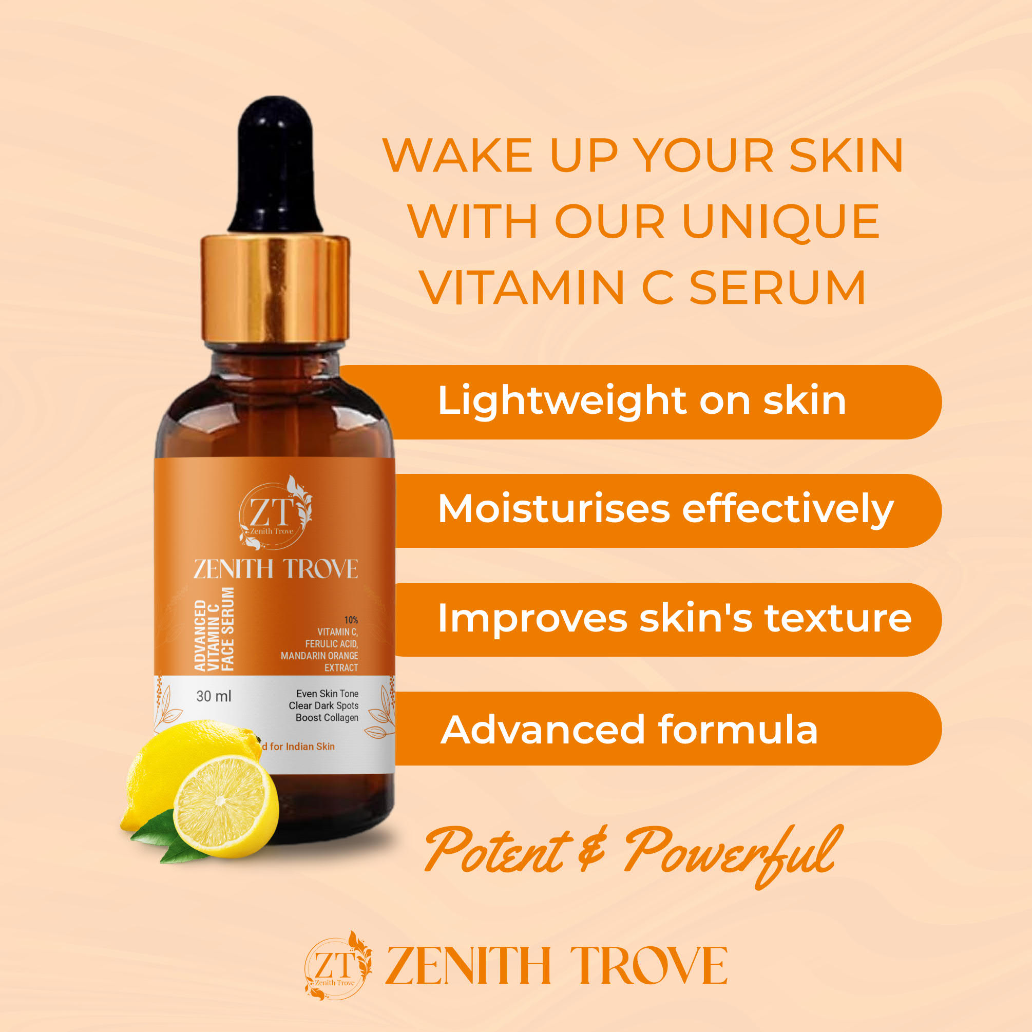 zenith trove 10 advance vitamin c serum with ferulic acid mandarin orange ext for dark spots pigmentation and glowing face
