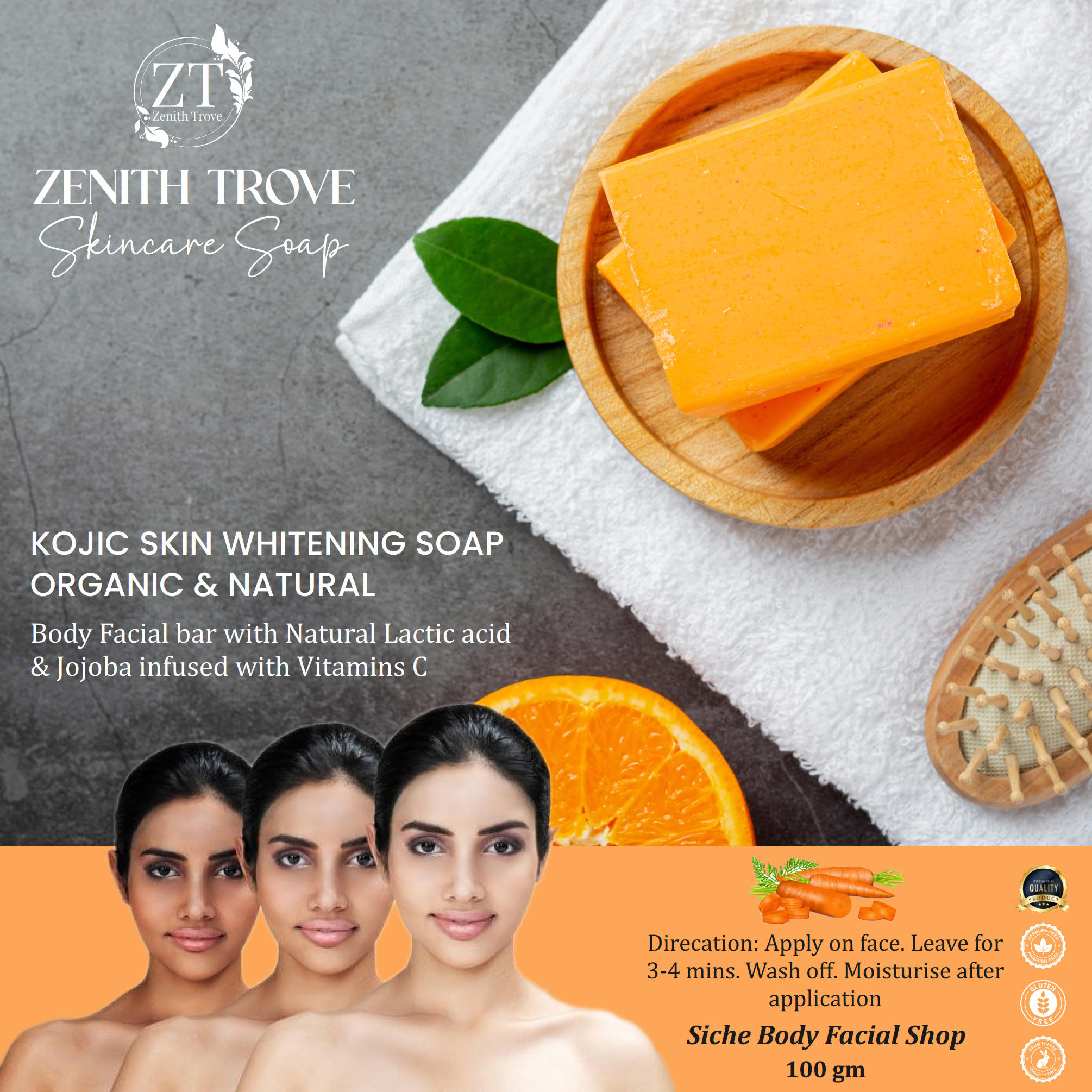 zenith trove kojic skin whitening soap organic and natural with lactic acid jojoba and vitamin c brightening face