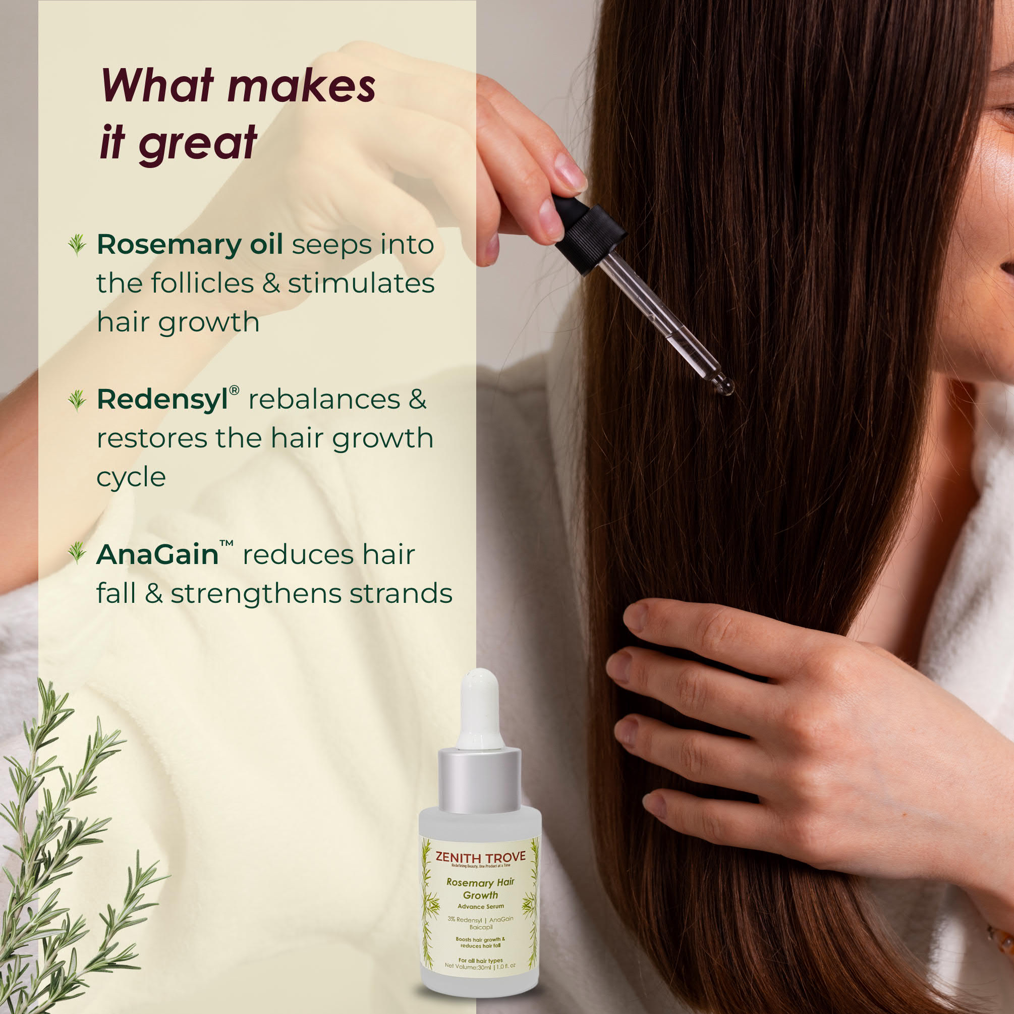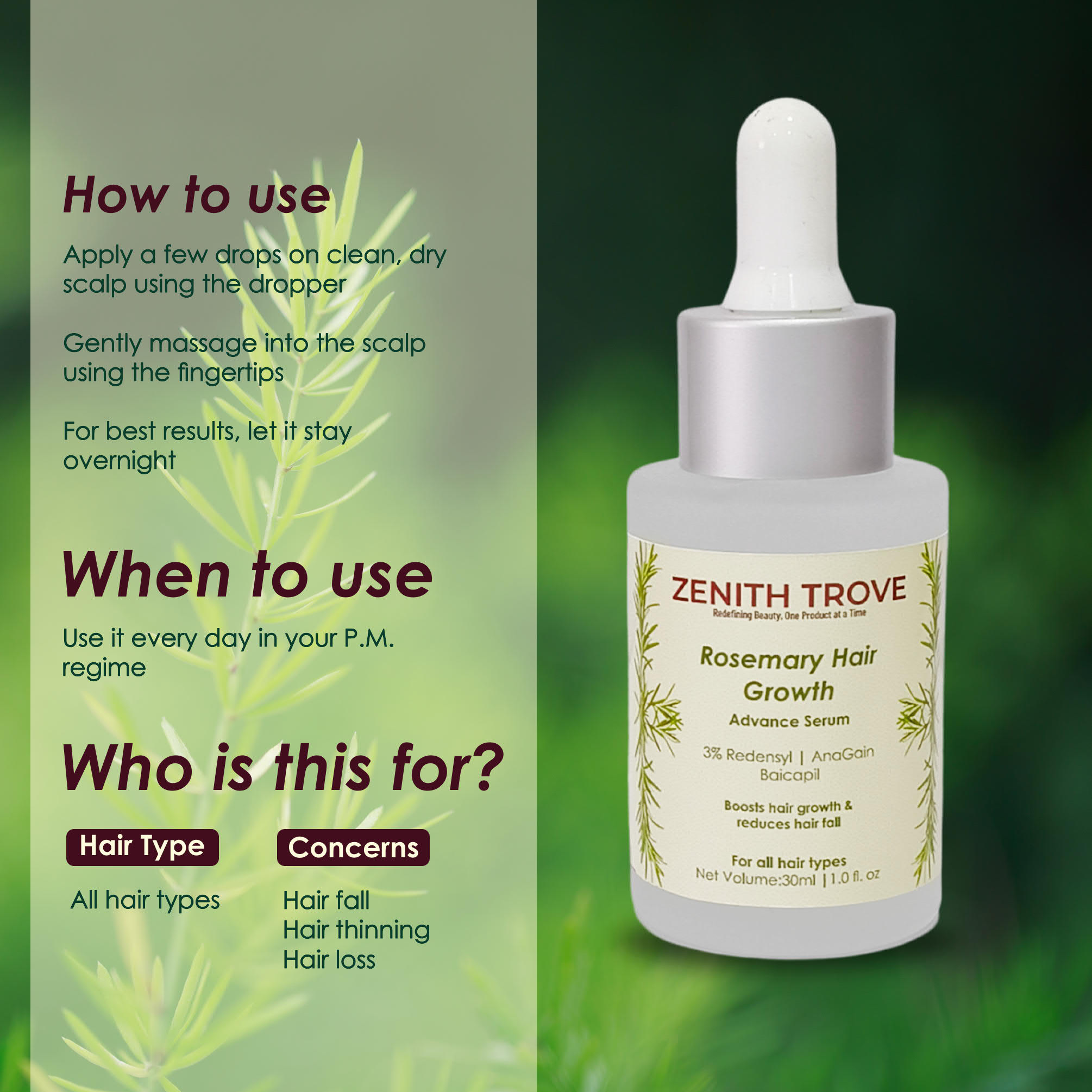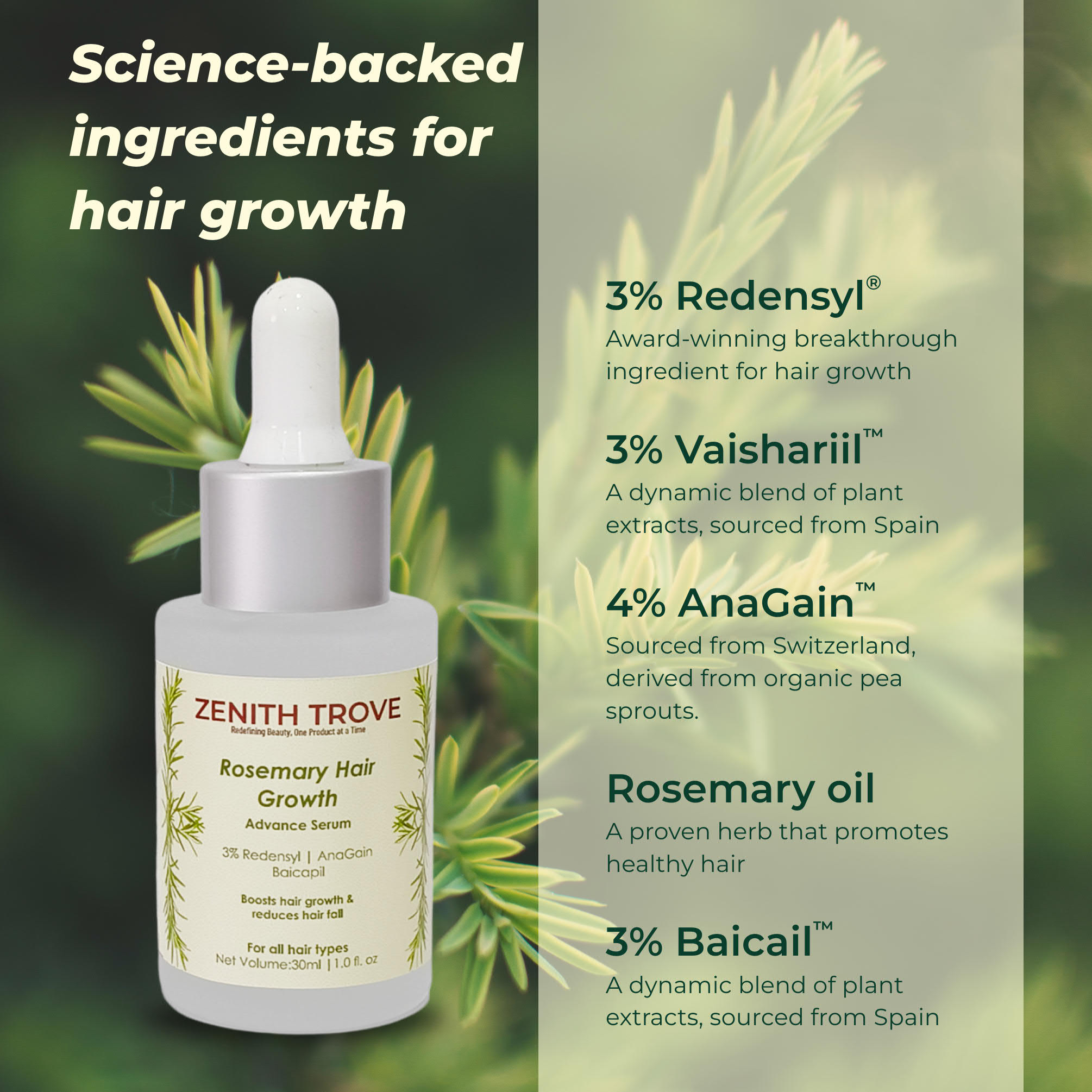 zenith trove rosemary hair growth serum with 3 redensyl 4 anagain 3 baicapil 30 ml stimulates hair growth increase