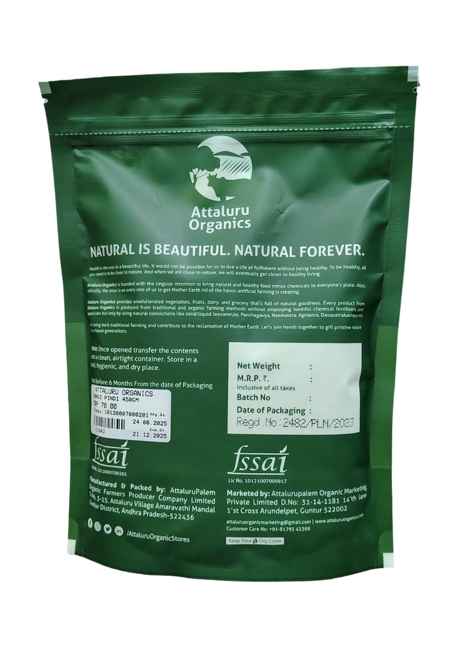 Attaluru Organics Raagi Atta is a finely ground flour made from 100 whole ragi finger millet packed with calcium iron and fiber A gluten free supergrain it s perfect for making rotis porridge and baked goods that support bone health and digestion